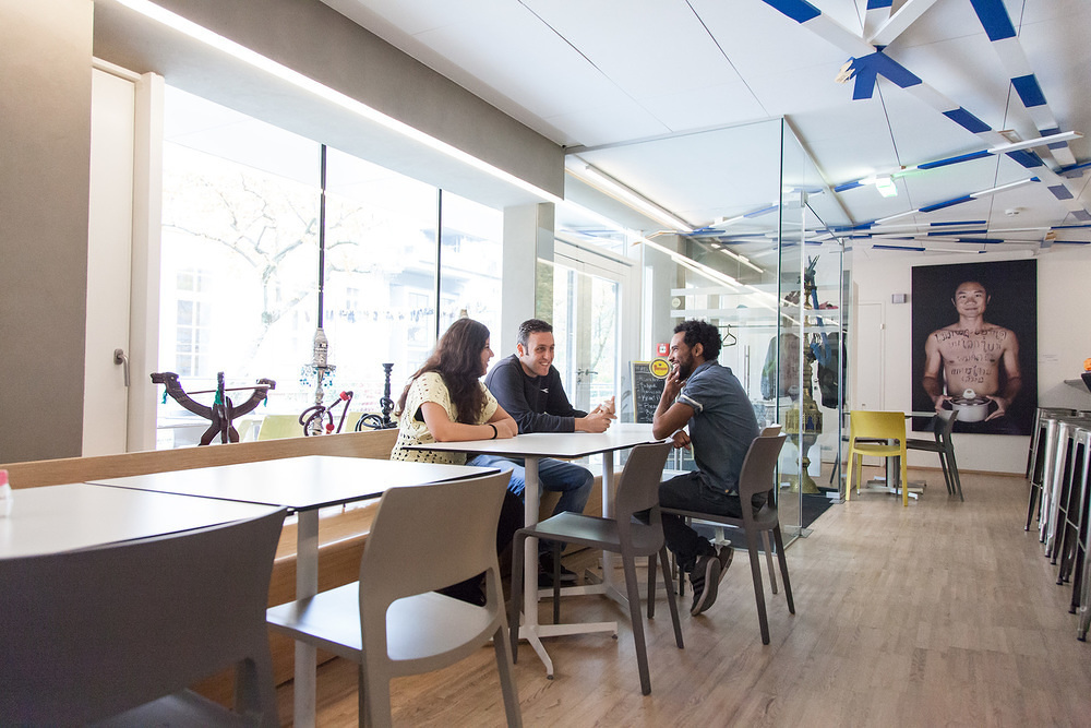 Internationale Speisen und Getränke, Salate, Desserts und kleine Imbisse in angenehmer und multikultureller Atmosphäre zu studierendenfreundlichen Preisen.