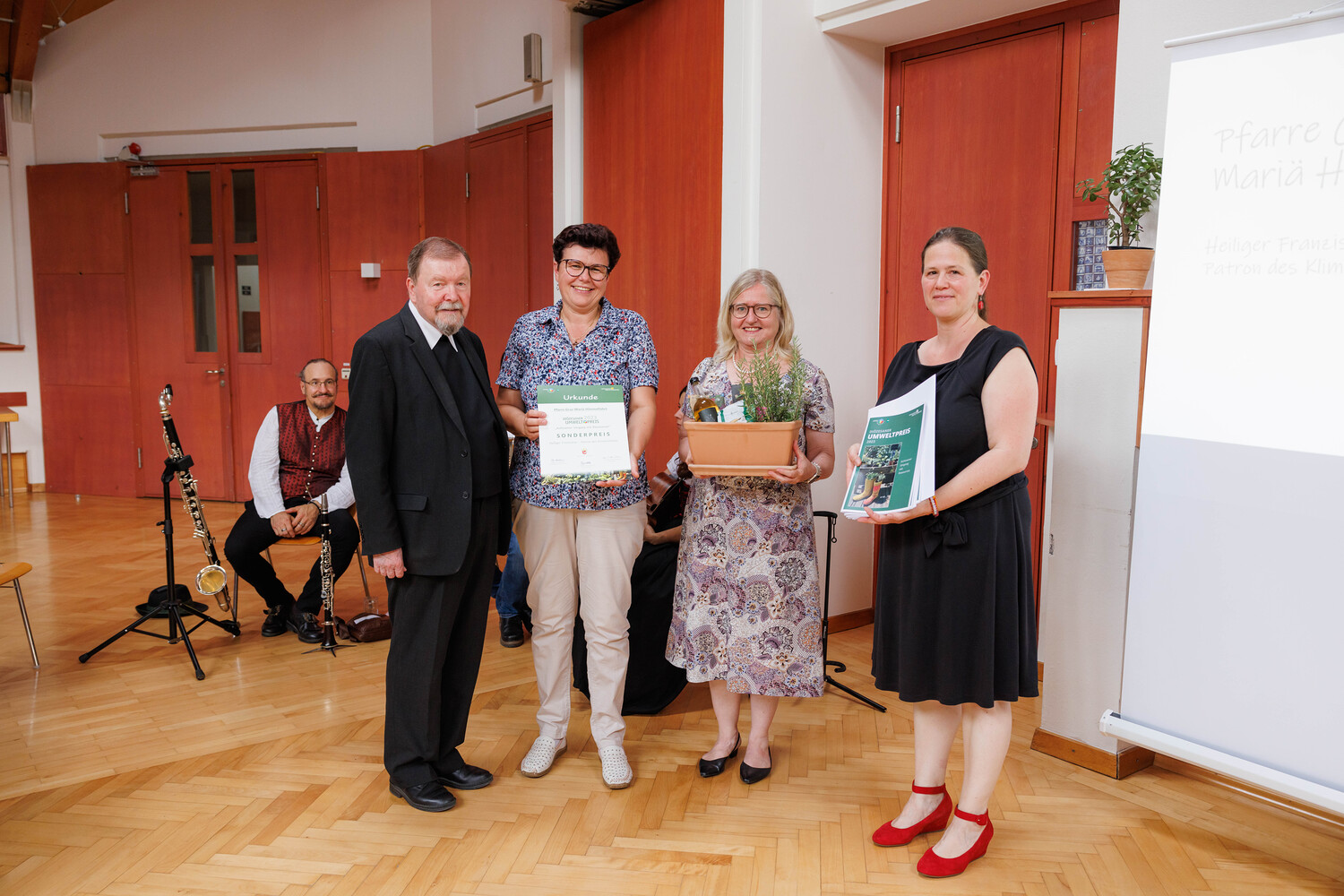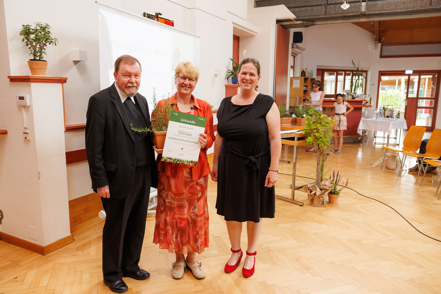 Neben den Hauptpreisen wurden Anerkennungspreise für Projekte aus den Bereichen Biodiversität, nachhaltig Feiern, grüne Verweilflächen, Second hand – Läden, Upcycling oder Lebensmittelrettung vergeben. „Das Engagement, das vorwiegend ehrenamtlich geschieht, ist ein unbezahlbarer Beitrag für die Schöpfung“, dankte Eva Heidlmair, Umweltbeauftragte der Diözese, den Festgästen.