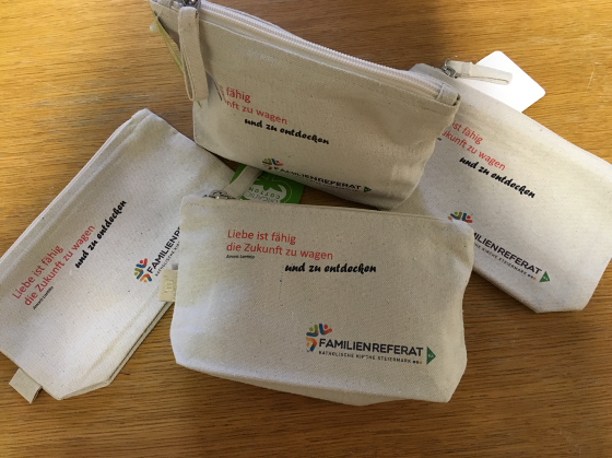 Die handliche Kulturtasche (Glumpert-Sackerl, Krimskrams-Beutel, …) mit dem Familienreferatslogo ist eine praktische Aufbewahrungsmöglichkeit diverser Utensilien für Handtasche, Rucksack, Handgepäck, Reisekoffer, …