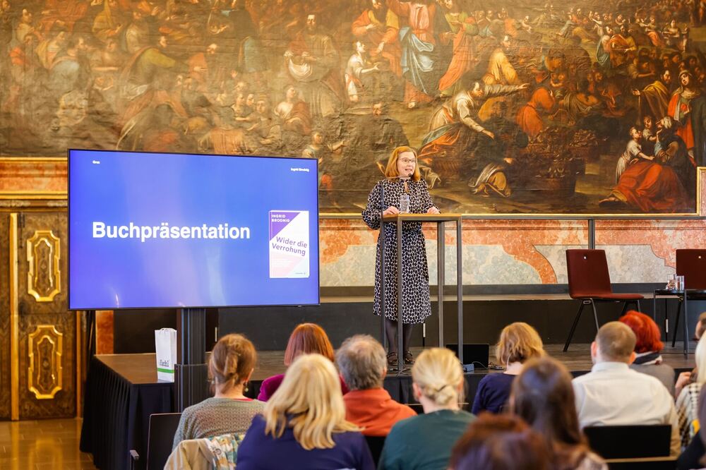 Dynamisch-humorvoll setzte die Top-Journalistin und Bestsellerautorin INGRID BRODNIG genau hier an und erläuterte, wie die Verrohung bewusst herbeigeführt wird: durch „Bullshit“-Debatten, populistische Diskussionsmuster, Diffamierung und Hetze gegen öffentliche Personen und rechtsextreme Kampagnen, angetrieben von Mechanismen sozialer Medien. „Gefährliche, kuriose und aufgeblasene Falschmeldungen zielen darauf ab, Gespräche und Konsens verhindern.“