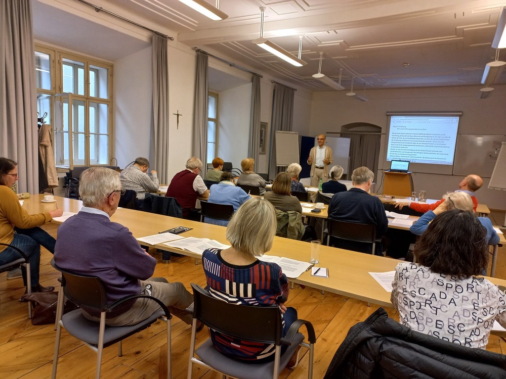 Dementsprechend groß war die Spannung unter den Teilnehmenden des Seminars am Mittwoch, 19.06.2024, – besonders auf das Neue in dem frisch im renommierten Herder-Verlag erschienenen Buch. Gleich vorweg betont der als durchaus kritisch denkend bekannte Theologe seine Intention: Er möchte den Menschen von heute „die Gestalt und Botschaft Jesu möglichst wortgetreu am biblischen Original, liebevoll und freimütig nahebringen“. Hervorgehoben wird von ihm – ein bemerkenswertes Novum, auch angeführt auf der Buchrückseite: „liebevoll“. Denn: „Streitigkeiten können wir uns in unserer Situation nicht leisten.“ In der aktuellen Kirchenkrise sieht Trummer aber zweifellos auch eine Chance, nämlich die einer Neubesinnung auf das Christliche, grundlegend Jesuanische, und weist auf die Bedeutung der Sprache hin. Diese hat gerade in Glaubensdingen für alle, besonders aber für ,Nicht-Insider‘, verständlich zu sein.