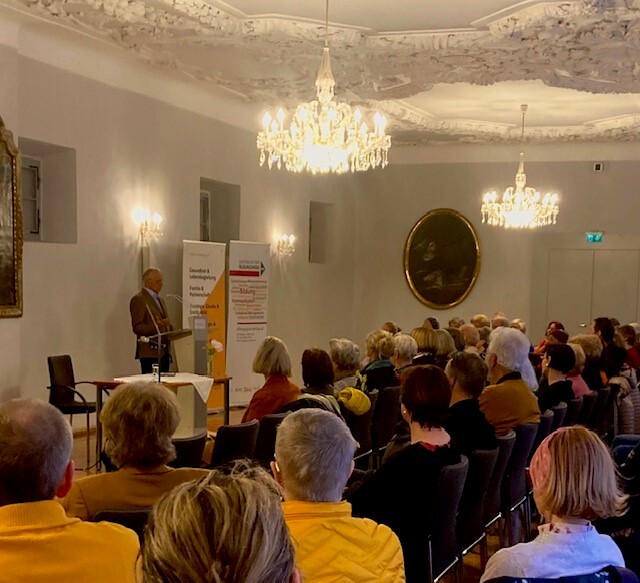 Der bekannte Autor, Vortragende, Theologe und Psychotherapeut machte deutlich: Ein erfülltes Leben gibt es, wenn „es aus der Kraft der Wurzel wächst“, getragen ist von der Zuwendung und Wertschätzung dem/der Anderen gegenüber und die Sehnsucht wach hält für das ganz persönliche Lebensfeuer. So könne die „Liebeserklärung ans Älterwerden“ in Augenblicken der Stille und Betrachtung wie auch im alltäglichen Tun umgesetzt werden. Denn das Älterwerden bedeute Lebensqualität, Reife, Bedächtigkeit, Leiser-treten, Dankbarkeit und Zu-sich-stehen, den Mut, die Wahrheit zu leben, sich ihren Herausforderungen zu stellen und sich an ihren Schönheiten nicht nur zu erfreuen, sondern sie auch von innen her zu verkosten. „Die Veredelung der Zeit“ in der wertvollsten Phase des Lebens umfasse, so Mettnitzer, den Mut, sich vom unnötigen oder belastenden „Gerümpel“ zu entledigen, auf den persönlichen „Fußabdruck“ nicht zu vergessen und zugleich, ganz im Sinne Rose Ausländers, offen und zuversichtlich nach vorne zu blicken: „Wirf deine Angst in die Luft […] Sei was du bist, gib was du hast.“ 1