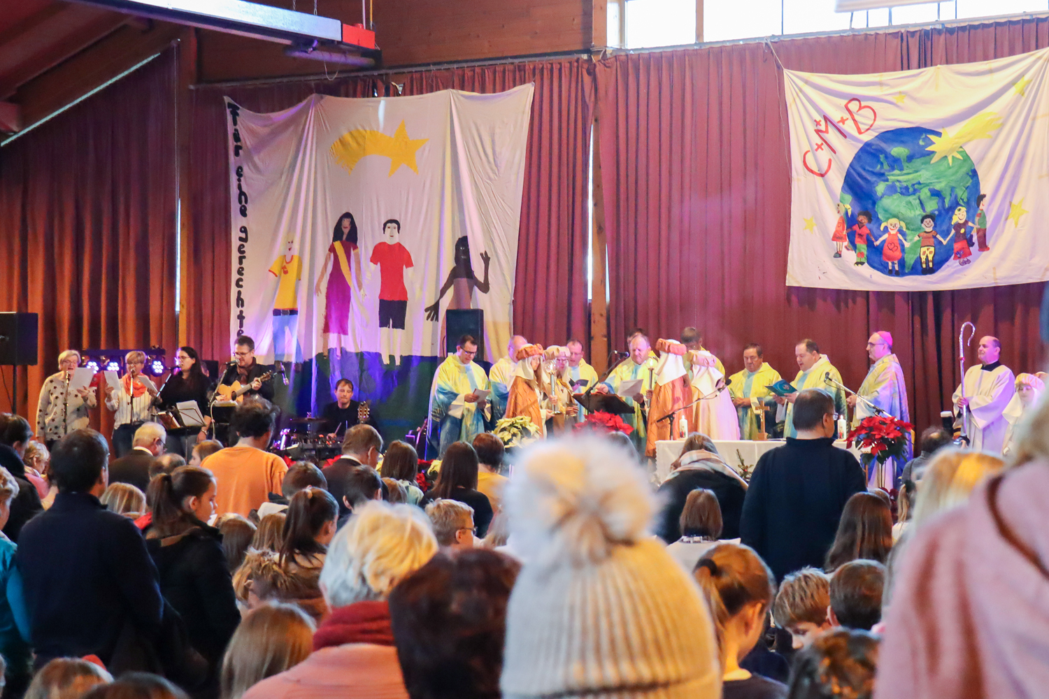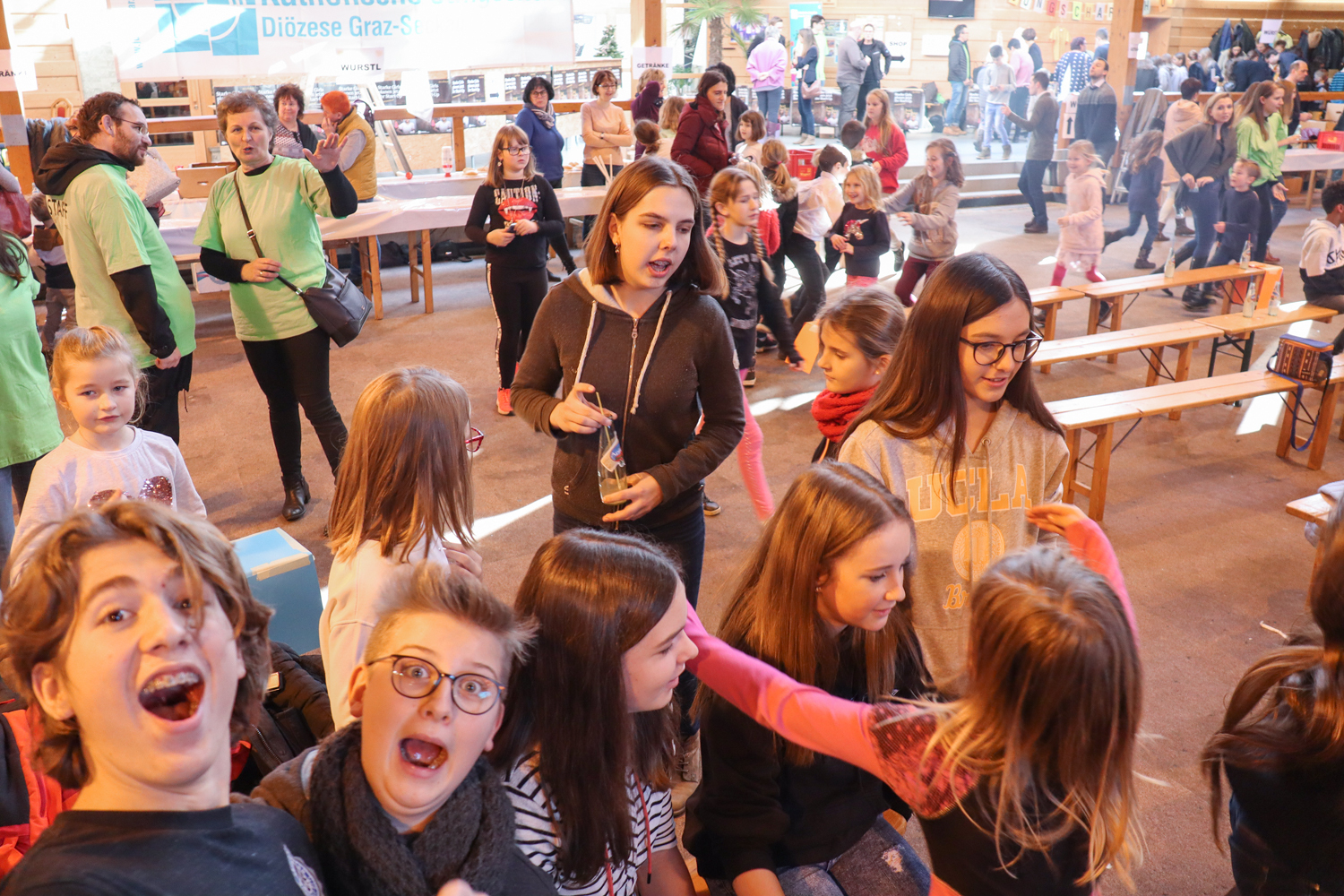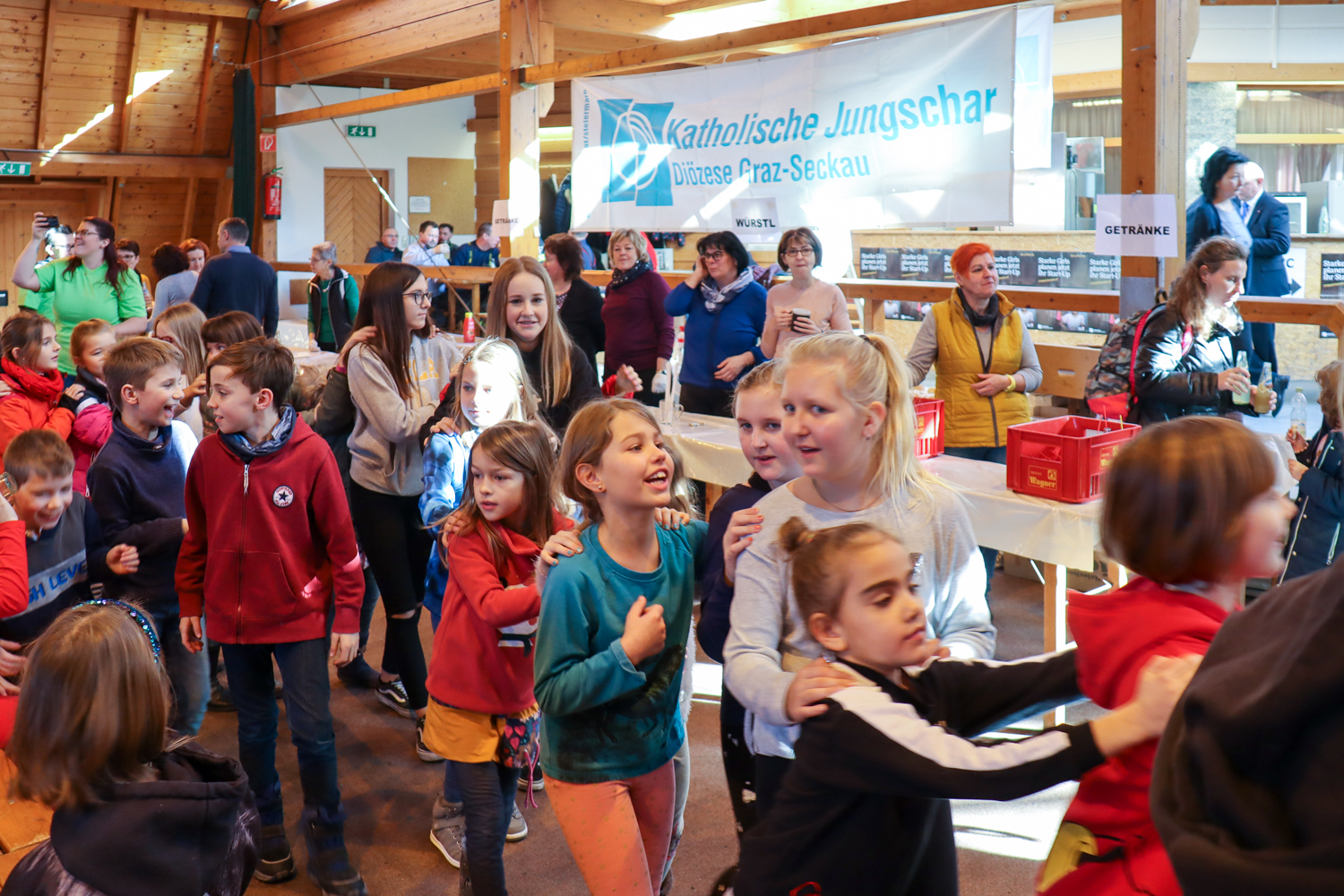Heuer trafen sich wieder einige hundert Kinder mit ihren Begleitern in der Veranstaltungshalle in Pistorf. Zuerst feierten wir mit unserem Herrn Bischof Wilhelm Krautwaschl einen schwungvollen schönen Gottesdienst.