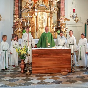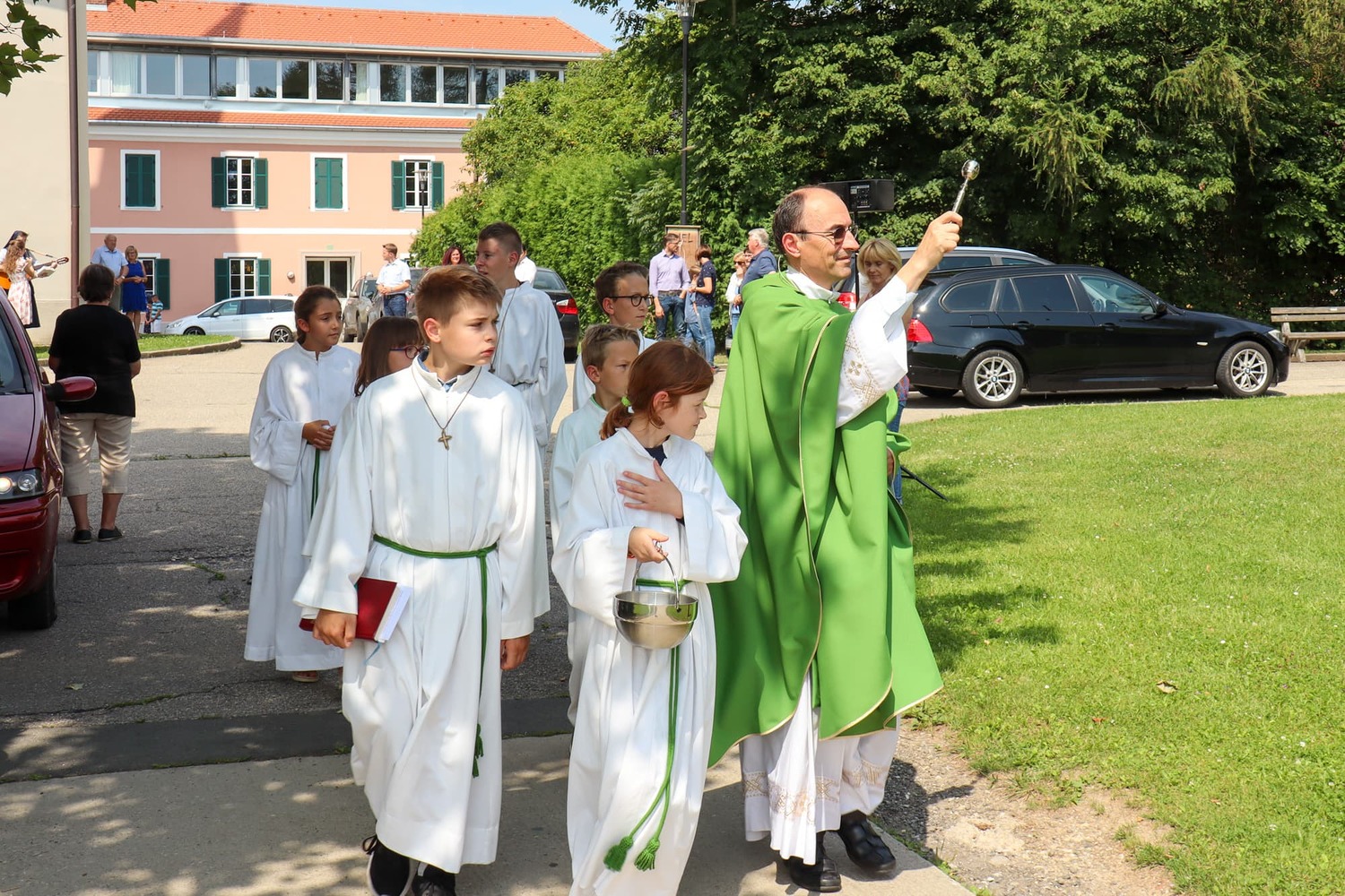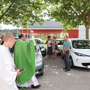 Stilgerecht fuhr Pfarrer Karner mit seinem E-Bike nach Dobl und parkte es neben einem Dreirad hinter der Kirche inmitten der Autos. Nach dem Gottesdienst wurde zur Fahrzeugsegnung eingeladen. Bei allem Fortschritt in der Fahrzeugtechnik begleitet uns im Verkehr doch die Unsicherheit vor unseren eigenen Fahrfehlern und dem Fehlverhalten der anderen Verkehrsteilnehmer. So meinte ein Fahrzeugbesitzer, der zur Segnung seines Autos gekommen war, die Verantwortung als Lenker ist heute fast zu schwer.