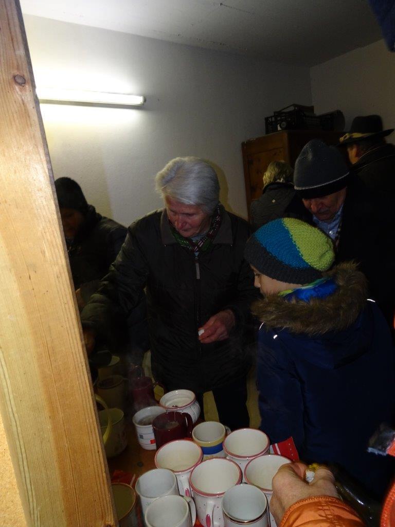 Anschließend kredenzte die gastfreundliche Familie Fassl in der Garage wärmenden Tee und schmackhaftes Kletzenbrot auf. Ein herzliches Vergelt`s Gott!