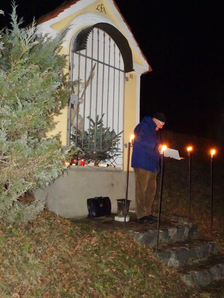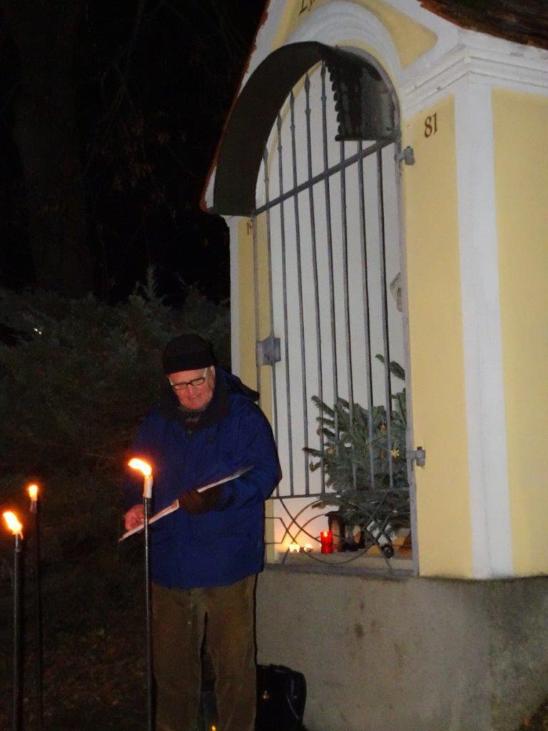 Dort führte Obmann Hans Sobl bereits zum 22. Mal durch ein umfangreiches einstündiges Programm mit vielen bekannten Weihnachtsliedern zum Mitsingen einladend, sinnigen Gedichte und Texten, zum Mitbeten sowie mit elektronischer musikalischer Umrahmung zur wunderbaren Einstimmung auf das bevorstehende Weihnachtsfest. Aber auch an die im Jahr 2017 verstorbenen 8 Kameraden wurde mit Anzünden von Kerzen gedacht.