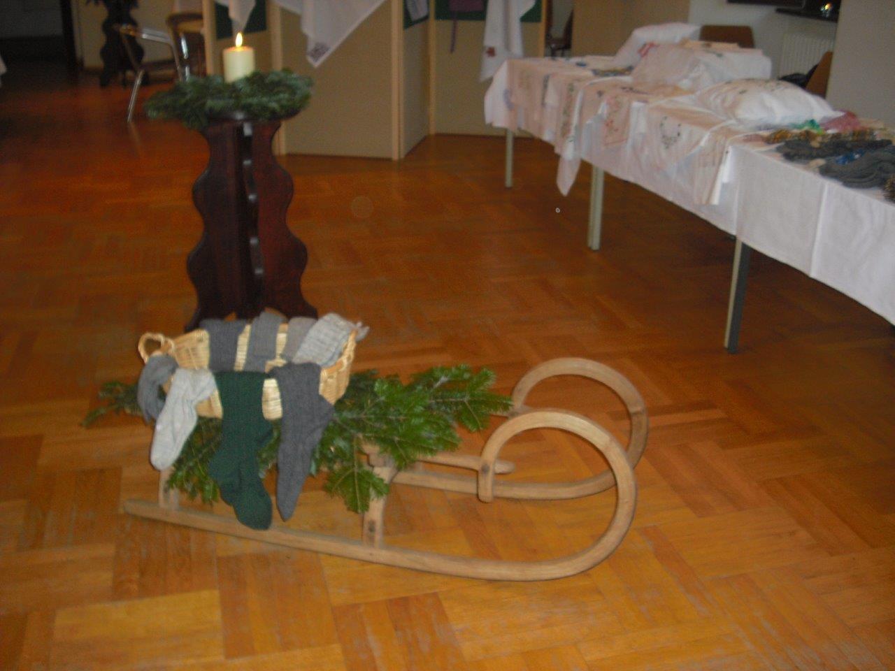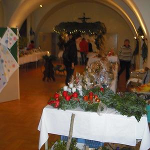 Zum Verkauf werden unter anderem Adventkränze, Adventgestecke, Weihnachtsbilletts, Basteleien, Lebkuchen, Lebkuchenhäuser, Mehlspeisen, hausgemachte Kekse, Krippen, Sterne, Tischdecken, Schürzen, Socken und Hausschuhe angeboten.