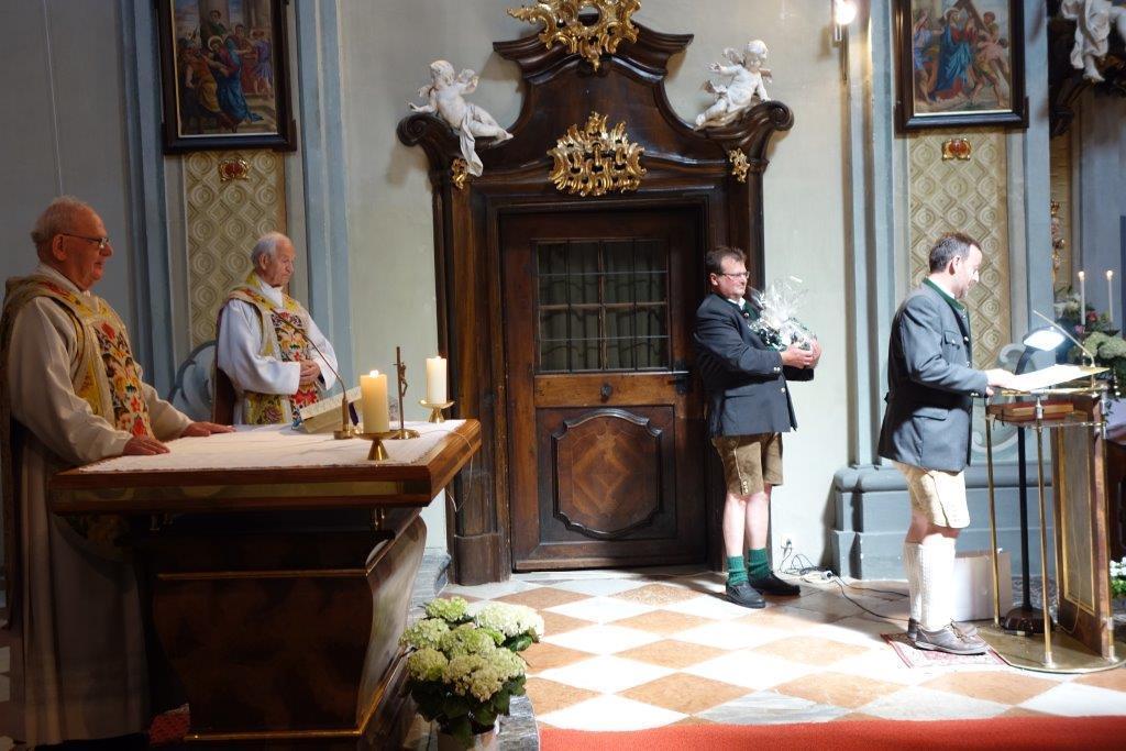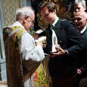 Der Vorsitzende des neuen Pfarrgemeinderates, sein "Täufling" Franz Rappold, und der Vorsitzende des Kirchenrates Adriach, Ludwig Fassl, gratulierten ihm hernach im Namen der Pfarrgemeinde zum Jubiläum und wünschten ihm Gottes Segen für sein weiteres Priesterleben und sein Wirken!