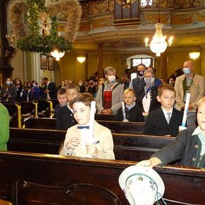Dank der Vorbereitung im Religionsunterricht durch Frau Theißl und dem Engagement der Tischmütter war die Freude der Kinder sichtbar groß, endlich in die Tisch- gemeinschaft der Pfarrgemeinde aufgenommen zu werden.