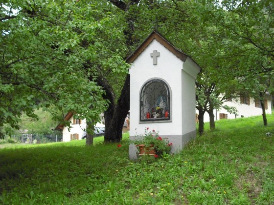 An der Hauseinfahrt zum Anwesen der Familie Maria und Vinzenz Waidacher vlg. Kaiser im Tal (im Volksmund „Koasa“) in Schrems 47 steht unter Obstbäumen und nahe der bekannten Obstpresse ein schöner Bildstock, der 1982 von P. Simon feierlich eingeweiht wurde.