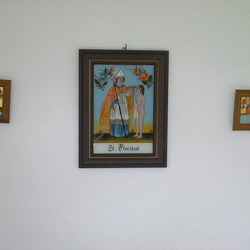 Im Gamsgraben steht auf einer kleinen Anhöhe hinter dem Wohnhaus der Familie Veronika (geb. Goess-Saurau) und Dr. Alexander von Leeb die jüngste Kapelle unserer Pfarrgemeinde. Sie wurde im Vorjahr als Privatkapelle errichtet und ist dem heiligen Floridus, dem Familien-Schutzpatron, geweiht. Dieser Heilige wurde in Tifernum in Umbrien (heute Città di Castello) geboren. Sein Wirken fällt in die Zeit Papst Gregors des Großen, d.h. ins 6. Jahrhundert. Nach dem Tod seiner Eltern „brachte er sich mit Hab und Gut der Kirche zum Opfer“, wie es in einem Heiligenlexikon von 1861 heißt. Sein Lehrer war der heilige Bischof Herculanus von Perugia, bis dieser den Märtyrertod erlitt. Floridus kehrte daraufhin in seine Heimatstadt zurück und wurde dort Bischof. Er vollbrachte verschiedene Wunder wie z.B. Krankenheilungen und wurde nach seinem Tod zum Patron seiner Kirche gewählt. Auf dem Hinterglasbild der neu erbauten Kapelle ist er in seinem Bischofsornat mit Stab und Mitra dargestellt, wie er gerade einen nackten Buben vom Wahnsinn heilt.