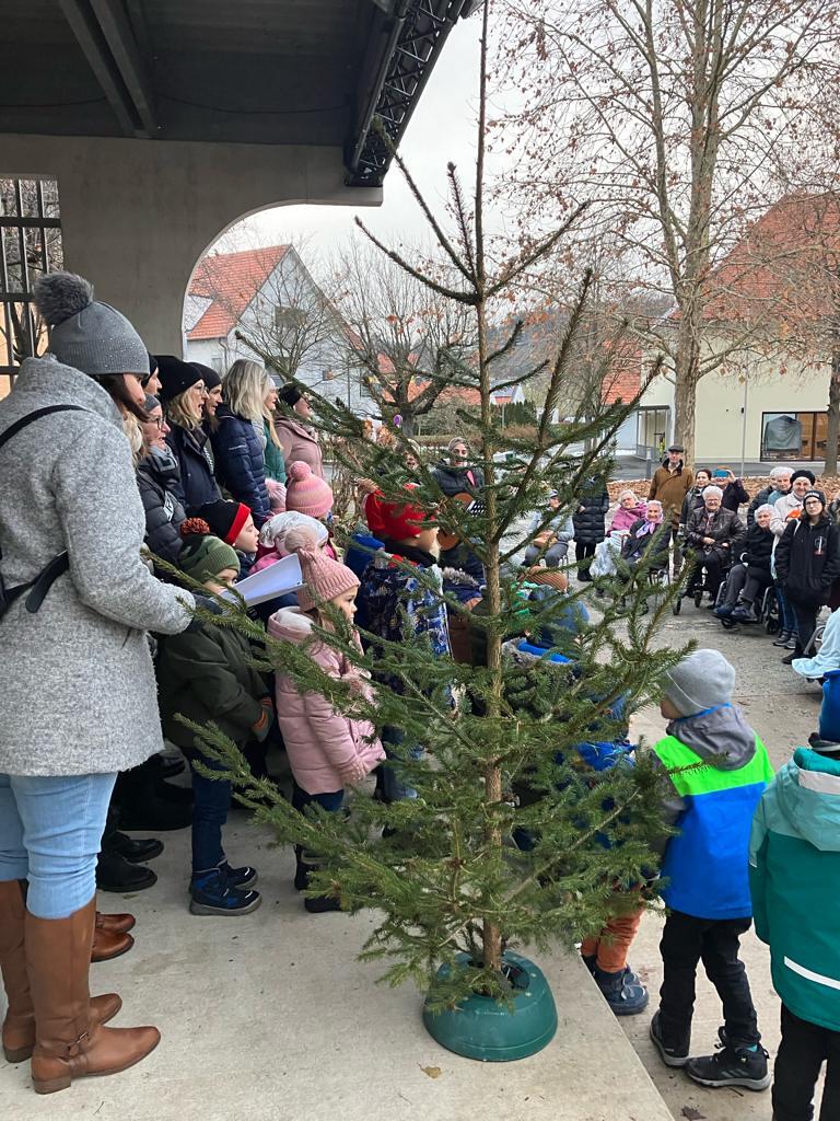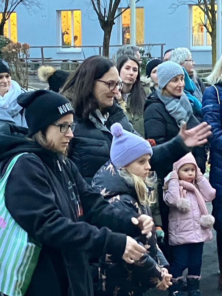 Die Kindergartenkinder gestalteten mit Ihren Betreuerinnen im Vorfeld des Nachmittags das 12. Adventfenster, das im Pfarrsaal ausgestellt wird. Alle freuten sich schon auf die gemeinsame Eröffnung des Fensters und versammelten sich am Peter-Paul-Platz. Mit Liedern und Geschichten, die die Kinder vortrugen wurde das Kunstwerk feierlich enthüllt.
