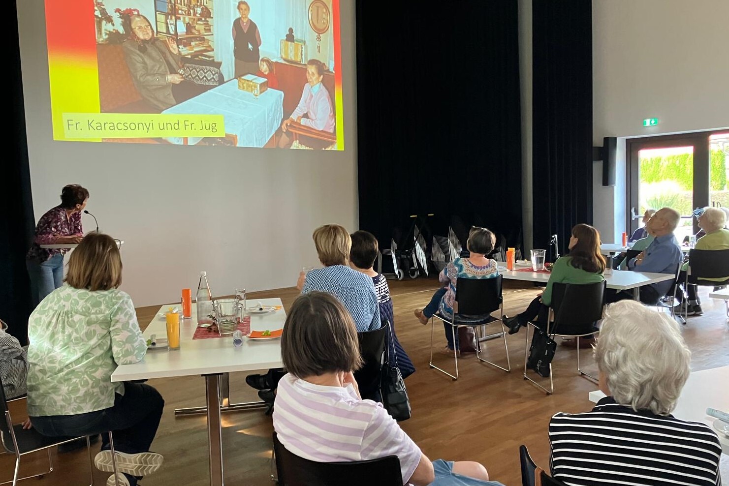 Frau Nezmahen, geb. Dreisiebner, hatte uns vor längerer Zeit mit ihren mitgebrachten Fotos aus vergangenen Zeiten erzählt. So kam unser Team auf die Idee einen Fotopräsentation für den Seniorennachmittag zu gestalten. Mit dem Einverständnis von Frau Dietrich, Frau Nezmahen und Herrn Resch, stellte Frau Moser Michaela eine Fotopräsentation zusammen, die dann gemeinsam mit den Bildspender:innen präsentiert und dokumentiert wurde.
