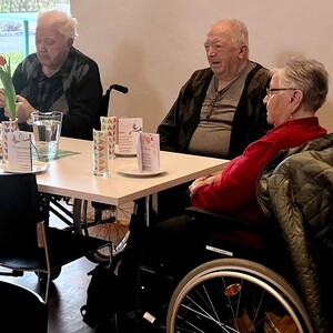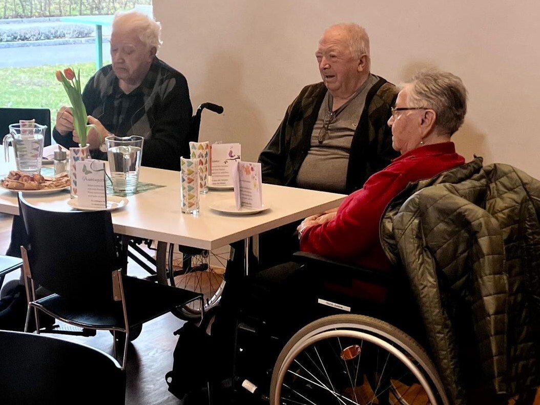 Frau Michaela Moser und Frau Susanne Schreiner überraschten die anwesenden Senioren heute mit dem Besuch einiger Kinder aus der Nachmittagsbetreuung. Der Raum war gefüllt mit lebendiger und fröhlicher Stimmung. Beim gemeinsamen Spielen mit Jung und Alt wurde viel geplaudert und gelacht. Die Kuchenteller leerten sich rasch und bei Kaffee, Wein und gesponserten Säften, waren alle Gäste bestens versorgt.