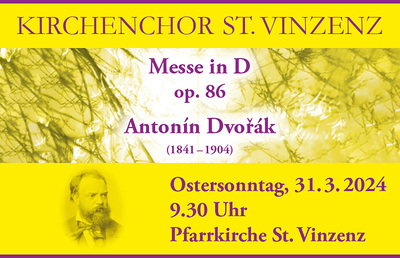 Am Ostersonntag, 31. März, dürfen wir wieder mit großer Freude dem Kirchenchor St. Vinzenz lauschen, der gemeinsam mit einem großartigen Orchester und Solisten die Festmesse gestalten wird.