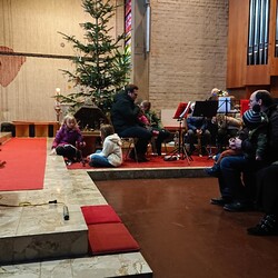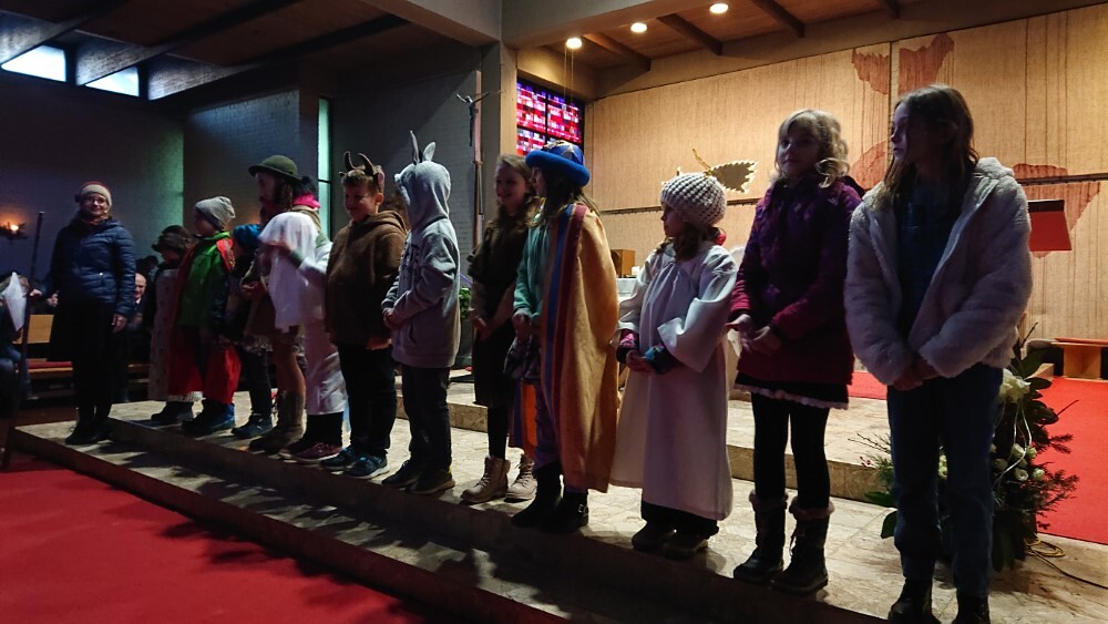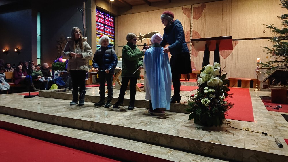 Tina Fegerl hat mit den Kindern in vielen Proben wieder ein tolles Krippenspiel einstudiert und eine besinnliche Andacht vorbereitet. Musikalisch begleitet wurde es von eine Bläsergruppe von klein bis groß.