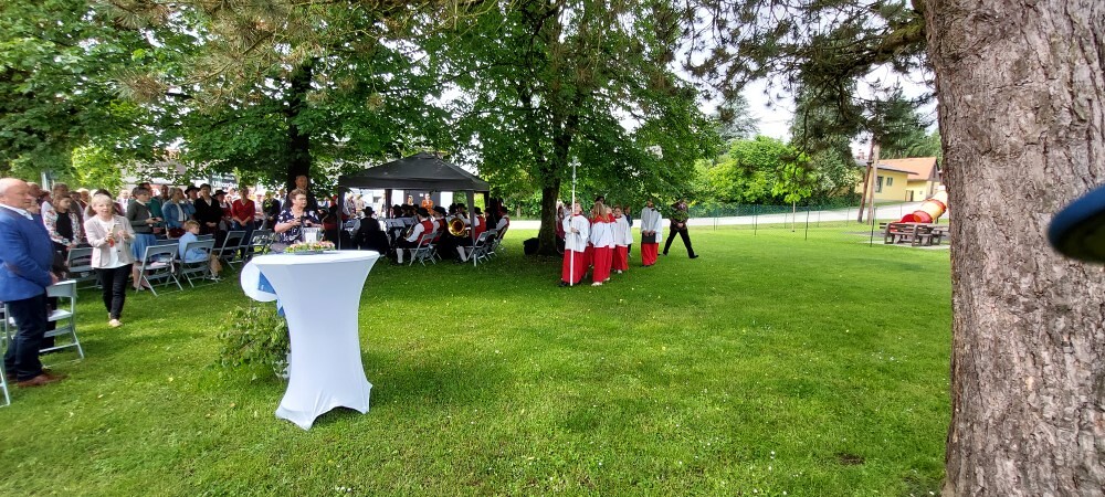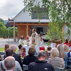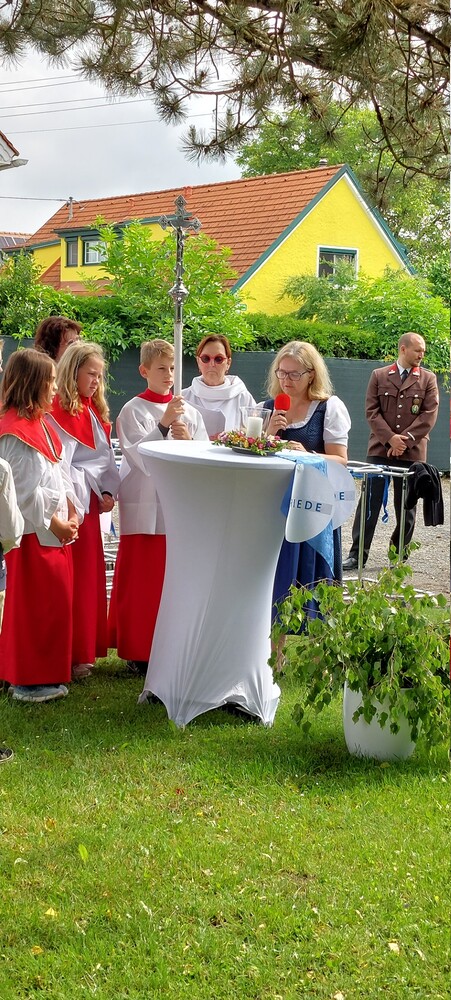 Gemeinsam mit der Pfarre Tobelbad feierten wir das Fronleichnamsfest beim Dorfkreuz in Lieboch. Der auferstandene Herr Jesus, der in der Gestalt des Brotes gegenwärtig ist, steht im Mittelpunkt.