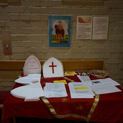 Ein Nikolaustisch mit Mitren zum selber basteln und Vorlagen für eine Nikolausfeier zuhause von Tina Schörgi wurde gerne angenommen, denn jede und jeder kann sein wie Nikolaus.