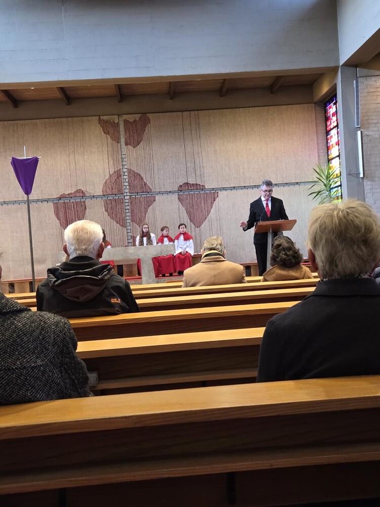 Der Karfreitag wurde in Stille vor dem leergeräumten Altar mit den Zeichenhandlungen der Kreuzverehrung, den großen Fürbitten und der Grablegung begangen. Gestaltet wurde die liturgische Feier von Thomas Possert und einem Ensemble rund um Siegfried Kager.