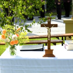 Christus ist der Heiland der Welt. Mit dem Liedruf "Herr, Ich glaube" zogen die liturgischen Dienste und die Kinder stellvertretend für das Volk Gottes zu den vier Stationen, an denen symbolisch Glaube, Hoffnung, Liebe und Brot dargestellt war. Die Pfarren Lieboch und Tobelbad zeigten mit der gemeinsamen Fronleichnamsprozession, dass sie Teil einer lebendigen, beweglichen Kirche sind.