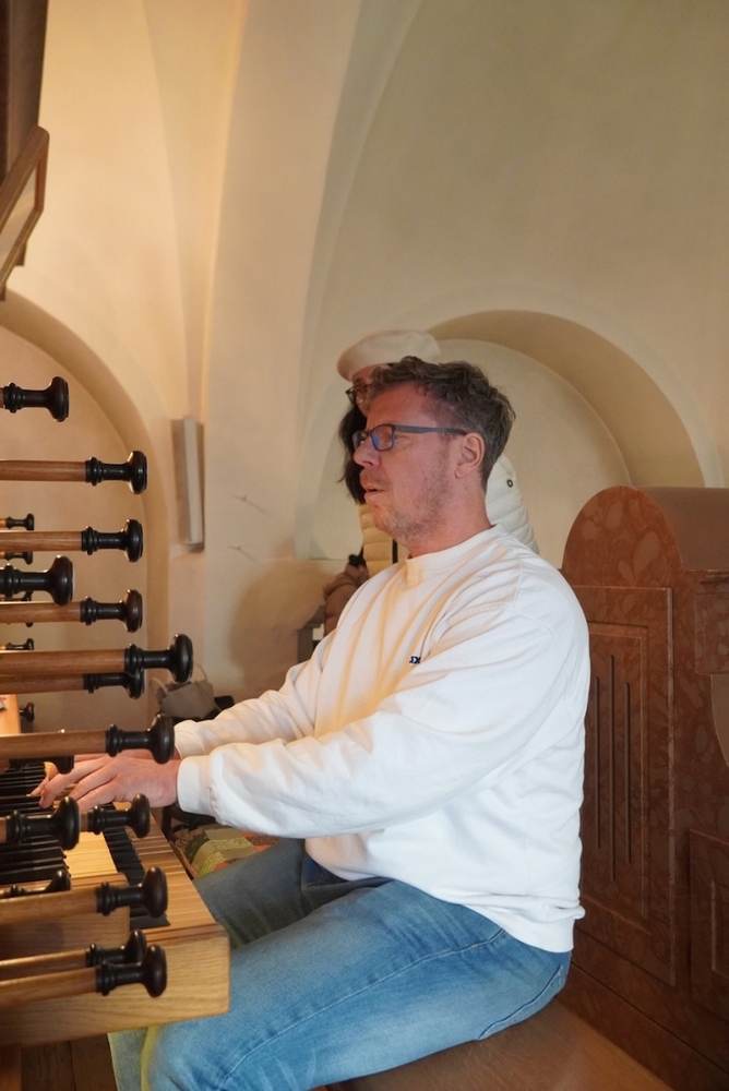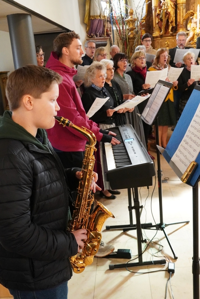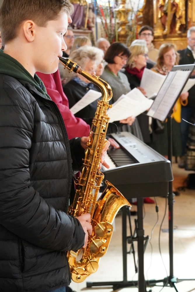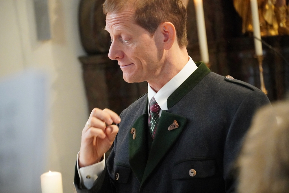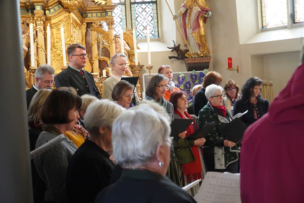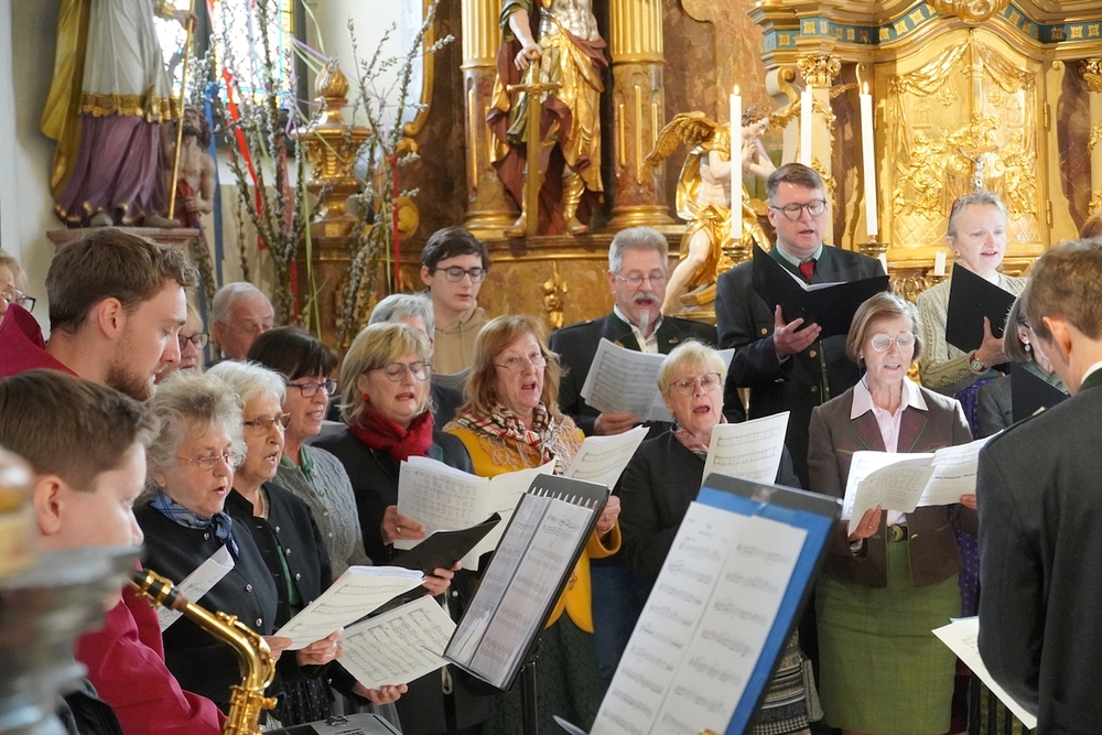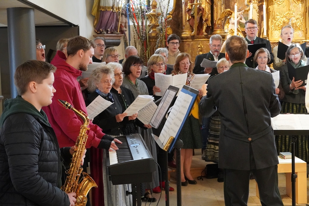 Musikalisch gestaltete eine Abordnung der MUZ von der Empore aus die heilige Messe - und auch danach beim Totengedenken mit Kranzniederlegung vor dem Kriegerdenkmal waren die Musiker*innen zur Stelle.
