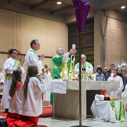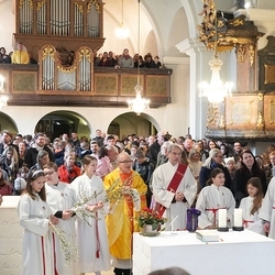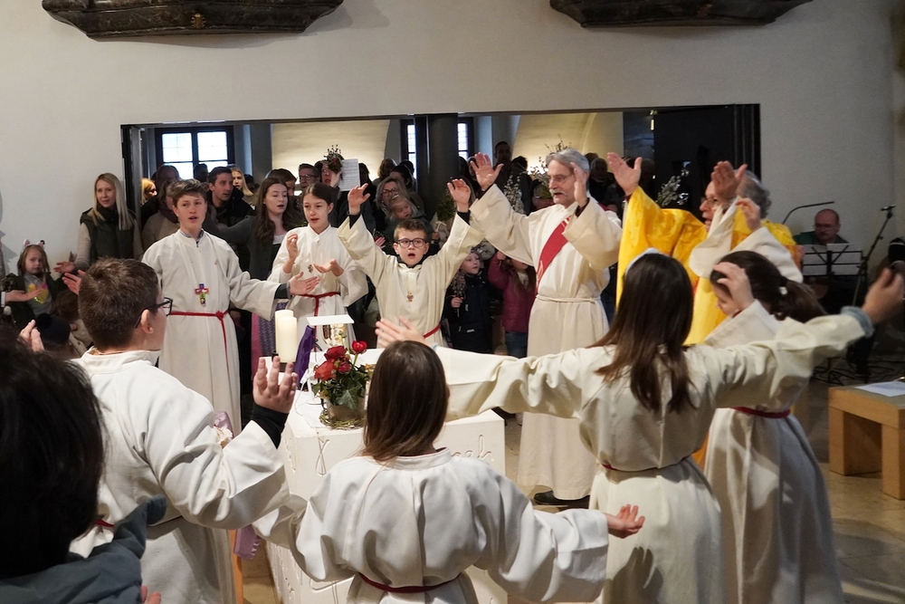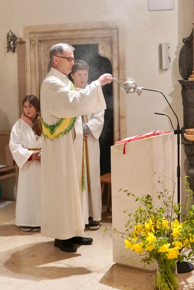Viel Weihrauch erfüllte den Kirchenraum und Elemente wie Evangeliumsprozession und Vater-Unser-Kreis für die Kinder betonten die Besonderheit der Feier.