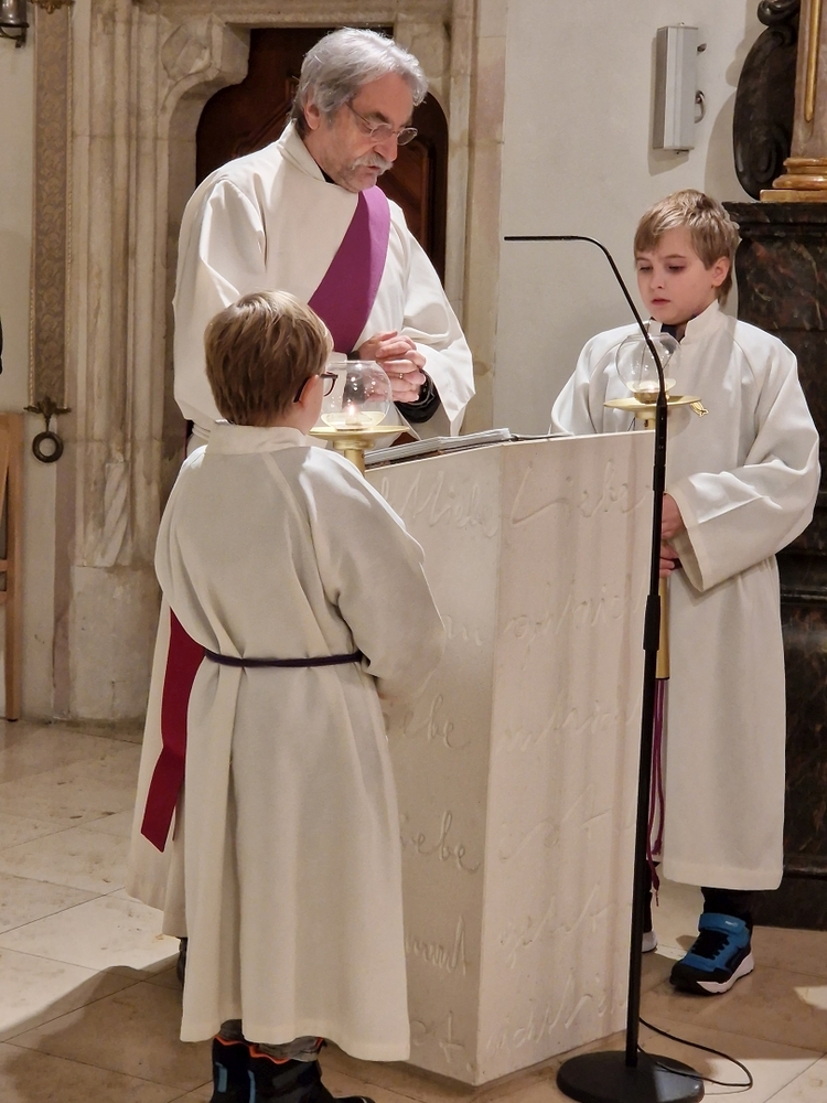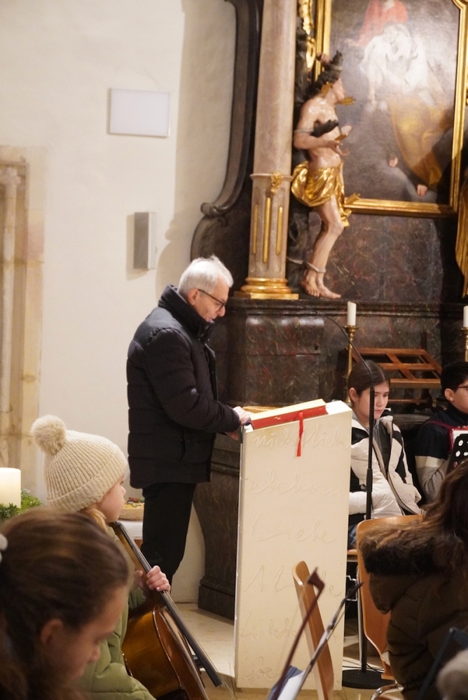 „So wie man eine Violine vor dem Spielen stimmen muss, dass sie gut klingt, so sollten auch wir uns auf Weihnachten gut einstimmen.“ Diesen Vergleich zog Vikar Gerhard Hatzmann in seiner Predigt. Es geht darum, leise zu werden und die feinen Töne wahrzunehmen, sodass die Freude aufs „Christkind“ im Herzen erklingen kann.