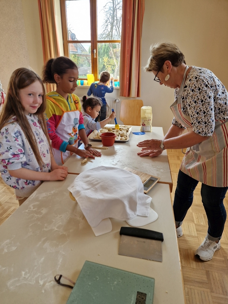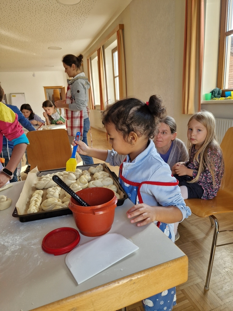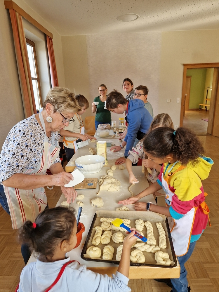 Dank Elena im Kindergarten Premstätten hatten sie neben dem Herd im Pfarrhof auch noch zwei weitere Herde in Verwendung, um die große Menge an geformten Teiglingen zu Köstlichkeiten zu verwandeln.