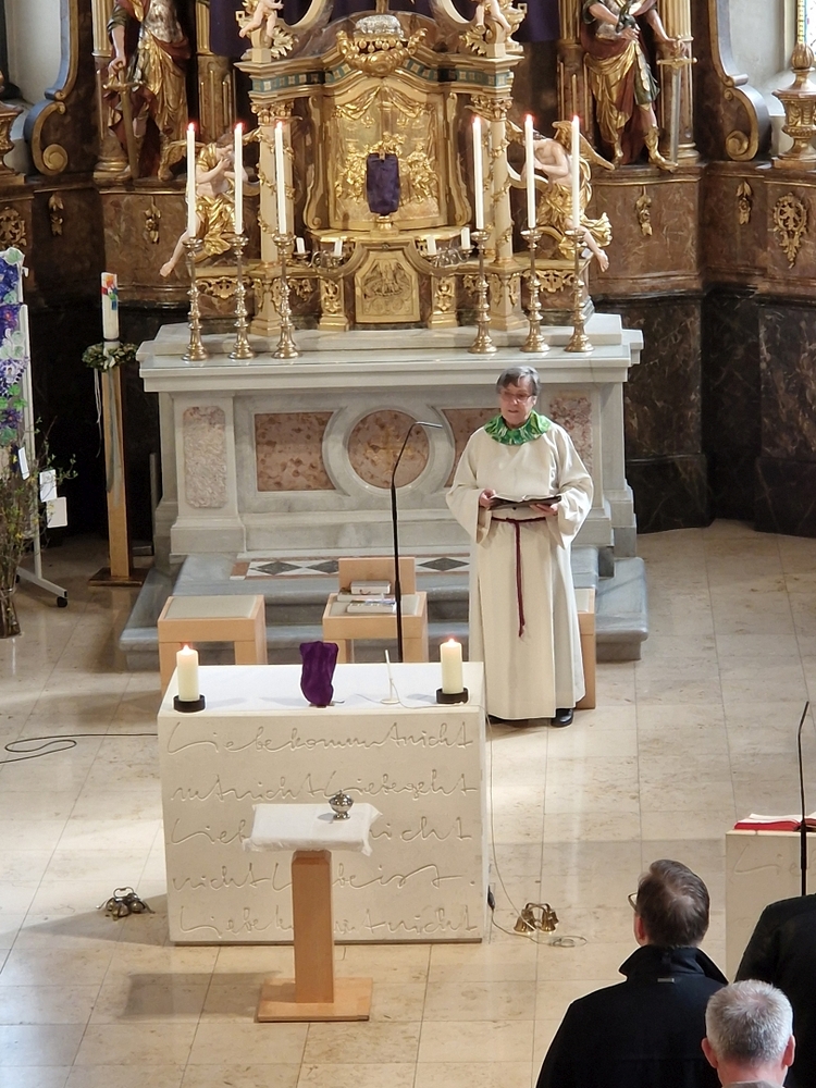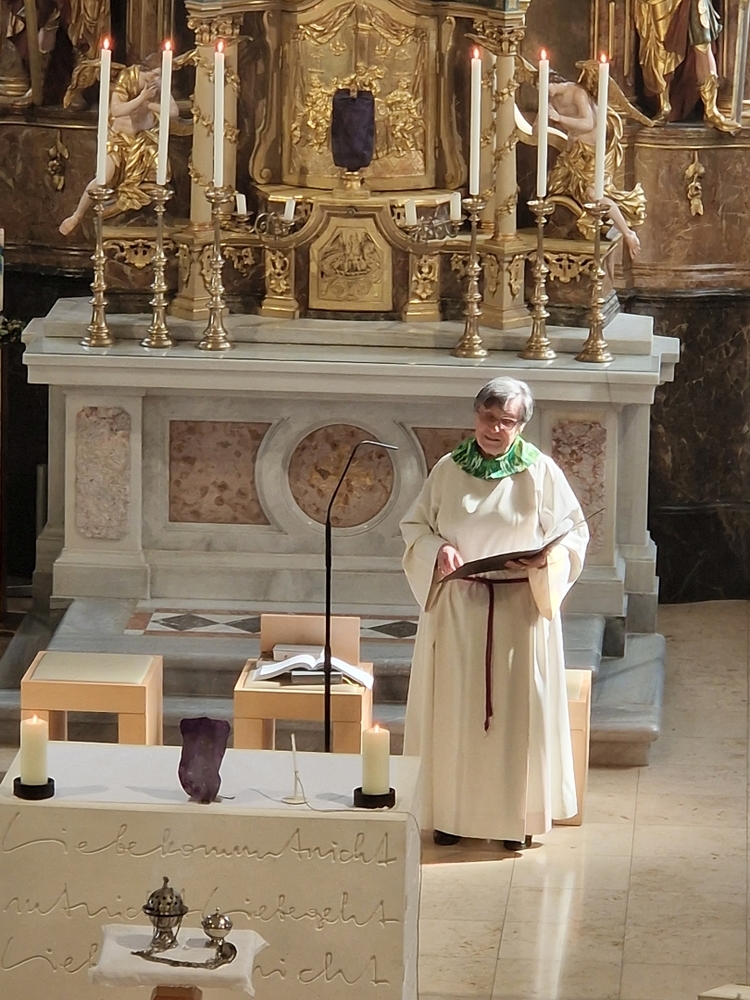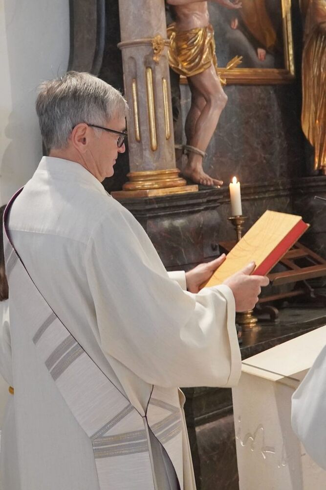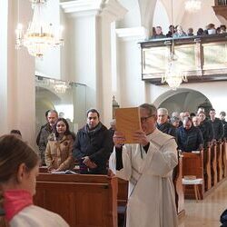Nach dem feierlichen Einzug betonte Vikar Norbert in der Begrüßung, wie schön es ist, dass Johannes neben vielen anderen ehrenamtlichen Tätigkeiten (Kantor, Organist …) nun auch den Dienst des Diakons ausüben wird.