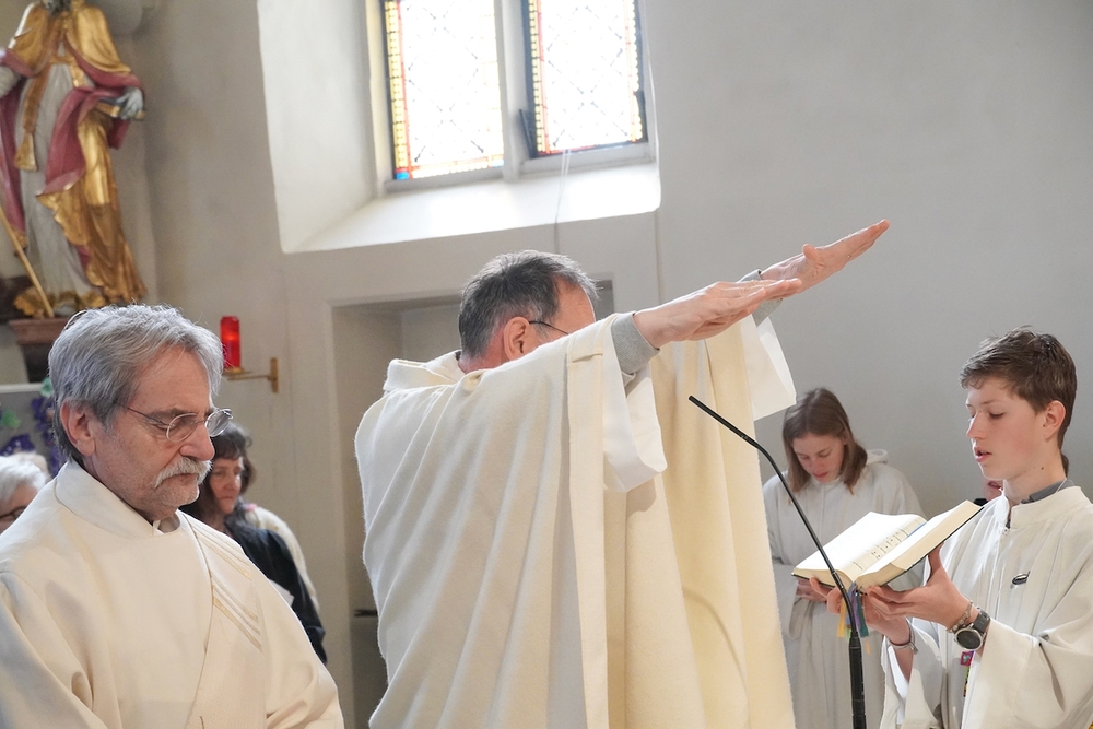 Der neu geweihte Diakon Johannes Chum feierte zusammen mit Vikar Norbert Glaser und Diakon Michi Zepf seine „Premiere“ als Diakon in seiner Pfarre, in der er schon seit gut 30 Jahren beheimatet ist.