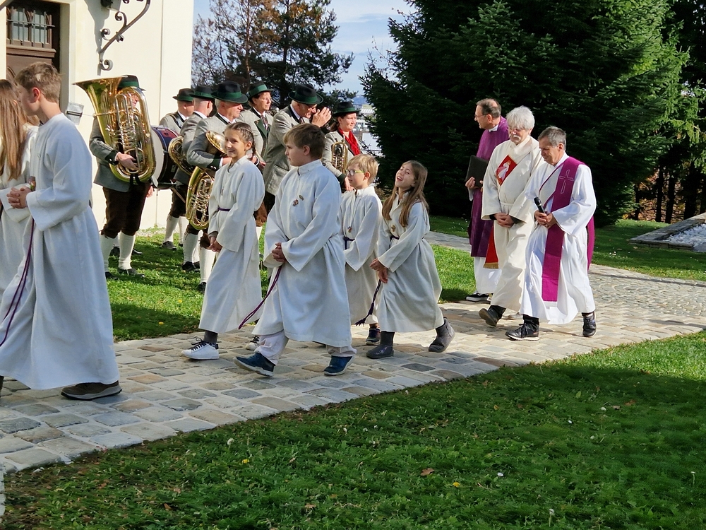 Zuvor wurde in schönen Texten und Gebeten, musikalisch umrahmt von der Marktmusik Unterpremstätten-Zettling, aller Verstorbenen gedacht. Auch wurden die Namen der im vergangenen Jahr heimgegangenen Personen nochmals laut ausgesprochen. Der aufsteigende Weihrauch verleiht den Verstorbenen besondere Würde und möge unsere Gebete zu Gott emportragen.