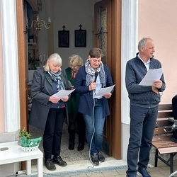 Alle Anwesenden lauschten gebannt im Rund unter herbstlicher Sonne und fallenden Blättern und bekamen in verschiedenen Gleichnissen versteckt für „ihre Premstättner Natur“ - speziell für den Kaiserwald - die Aufgaben und die Verantwortung zugeteilt. Die geleistete Spende für Speis und Trank geht an das Sozialprojekt der Gemeinde „Und das Christkind gibt es doch!“.