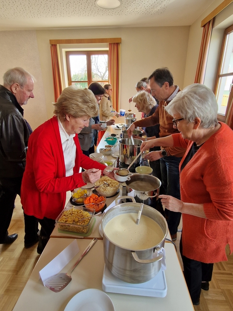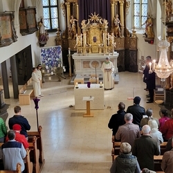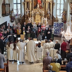 Zum anschließenden Pfarrkaffee lud der Kirchenchor herzlich ein und freute sich über viele Gäste, die das Zusammensitzen bei Kuchen und Kaffee/Tee in netter Gemeinschaft - auch mit Diakon Johannes und seiner Familie - sehr genossen. Ein netter Ausklang eines besonderen Vormittags!