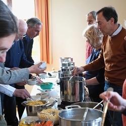 In dieser besonderen Stimmung fand man sich nach der heiligen Messe gerne im Pfarrheim zum Pfarrkaffee ein, den ein kleines Team liebevoll vorbereitet hatte. Zuvor konnte man anlässlich des Sonntags der Weltkirche - von den Minis angeboten - noch Schokopralinen kaufen, um sich und anderen Gutes zu tun!