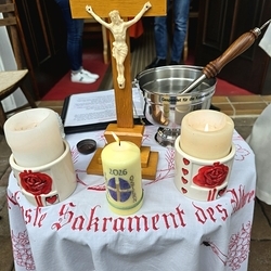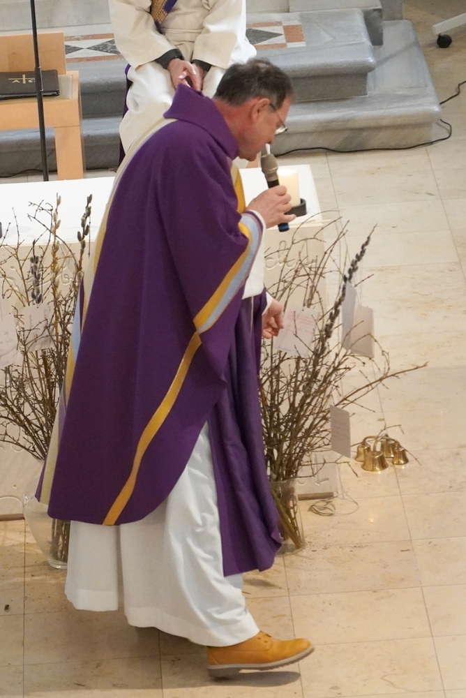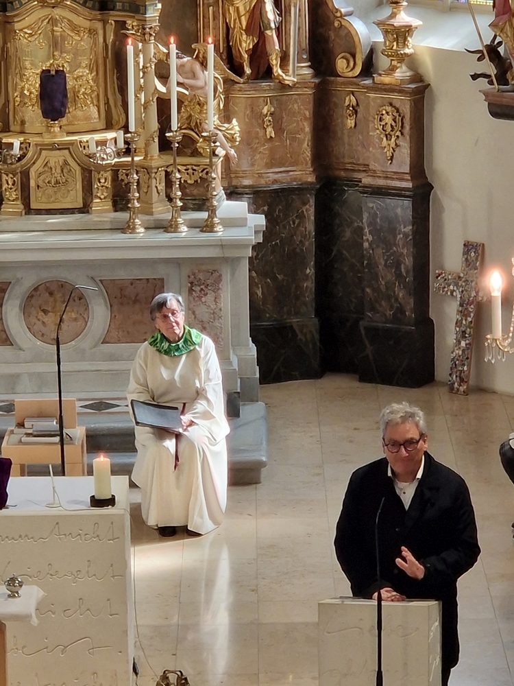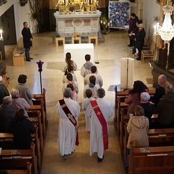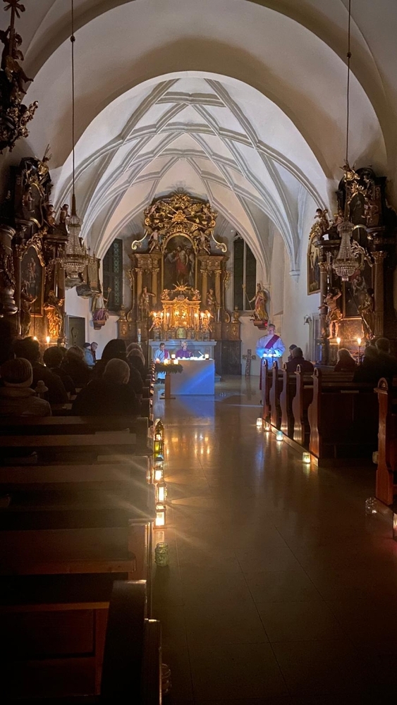 Gedanklich führte uns Vikar Norbert auf die Spur, was der Vers „Seid also wachsam!“ aus dem Evangelium (Mt 24, 42) für uns heute heißen kann - und wie die Vision des Jesaja, dass Schwerter zu Pflugscharen und Lanzen zu Winzermessern umgeschmiedet werden (Jes 2, 4), in unserer Welt ein Stück weit Wirklichkeit werden könnte. Es kann nur gelingen, wenn „Menschen ihr Lebensnavi in Jesus verankern“, so Vikar N. Glaser in seiner Predigt.