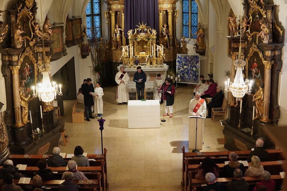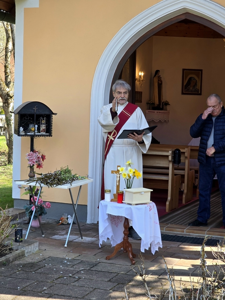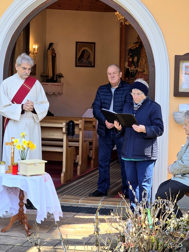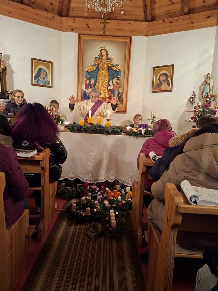 Diakon Michi Zepf segnete im Rahmen von Wort-Gottes-Feiern um 18 Uhr in der Pfarrkirche und um 19 Uhr in der Kaiserwald-Kapelle die herbeigebrachten Adventkränze.