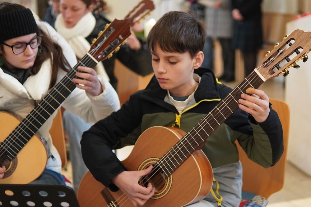 Das Gitarrenensemble der Musikschule Premstätten eröffnete am ersten Advent den Reigen der musikalischen Gottesdienstgestaltungen an den Adventsonntagen in unserer Kirche.