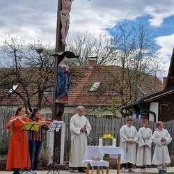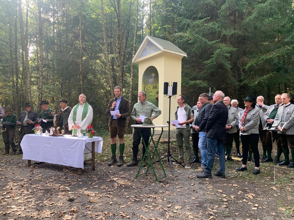 Die Rollenverteilung war ausgewogen. Von den Jägern der Jagdgesellschaften kamen die Grußworte, die gesprochenen Teile der Messe und die Einladung zum Zusammensein mit einer kräftigenden Bewirtung nach der Feier. Der Bürgermeister der Gemeinde Premstätten erzählte von den Leistungen anlässlich der Renovierung und von der Geschichte des Jägerkreuzes, und schließlich segnete in seinem Beisein Pfarrer Claudiu Budău den neu gestalteten Bildstock. Der Pfarrer führte dann durch den Ruf der Jagdhornbläser in die Geheimnisse des Waldes ein und sprach sehr lobend und begeistert in seiner Predigt über das Engagement der Jäger. Der Steirische Jägerchor gab mit der Neuberger Jagdmesse der Feier musikalischen Glanz.