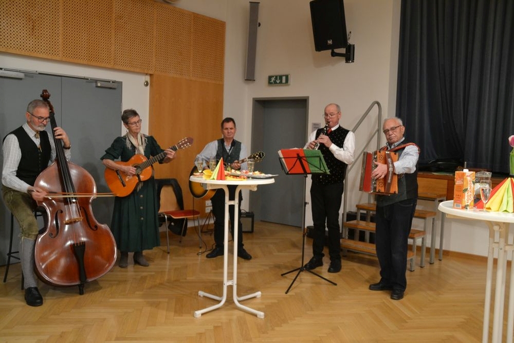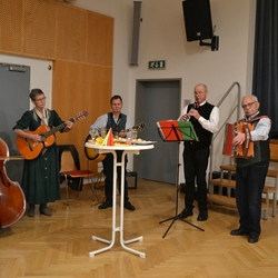 Im Anschluss waren die ehrenamtlichen Mitarbeiterinnen und Mitarbeiter beider Pfarren zum gemütlichen Beisammensein ins Kulturheim Wundschuh geladen. Dort konnte man - bei fröhlicher Musik der Lichtmessgeiger - köstliche Brötchen, Sekt und Krapfen genießen und den Rosenmontag mit angeregten Gesprächen ausklingen lassen.