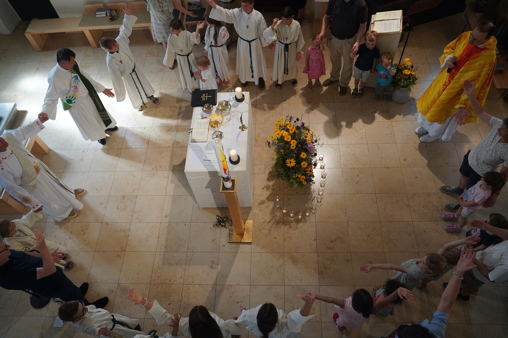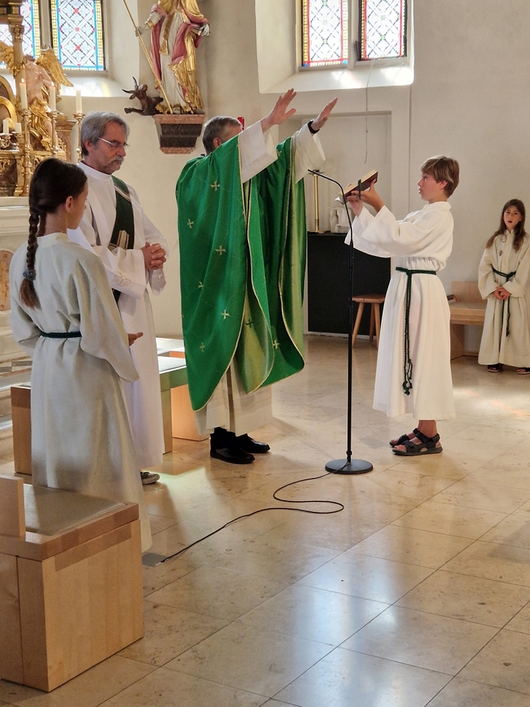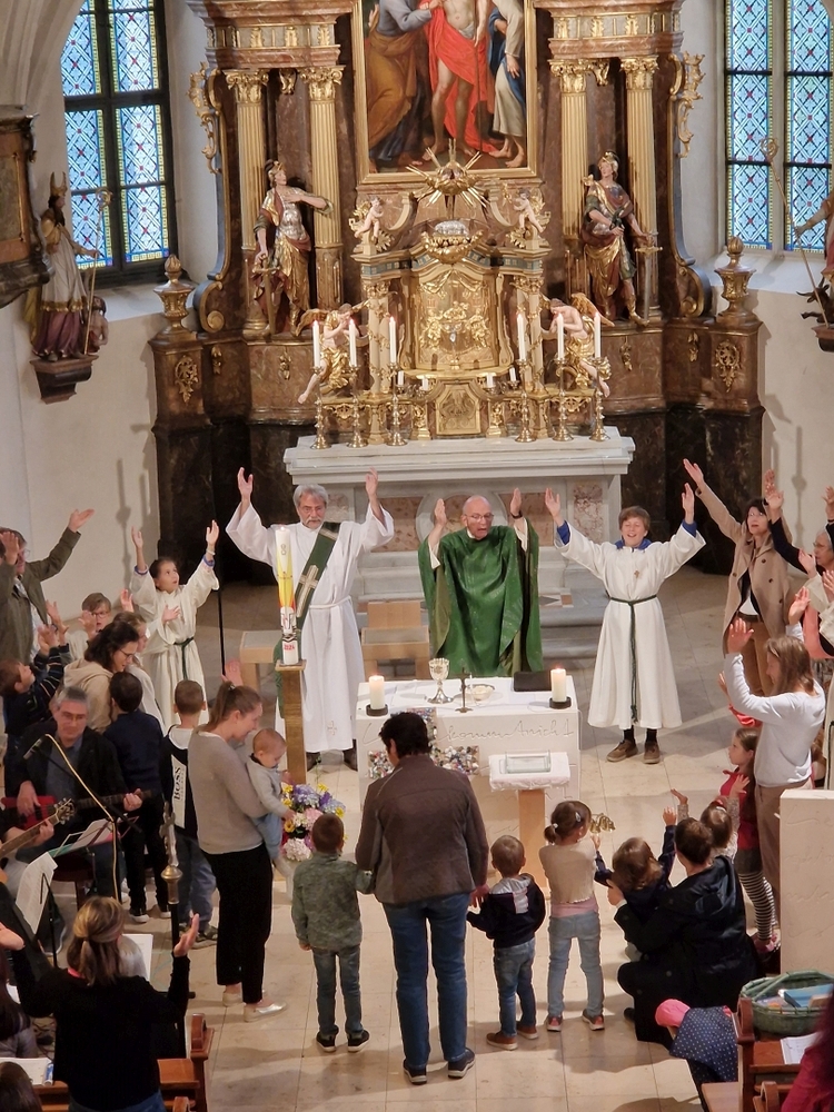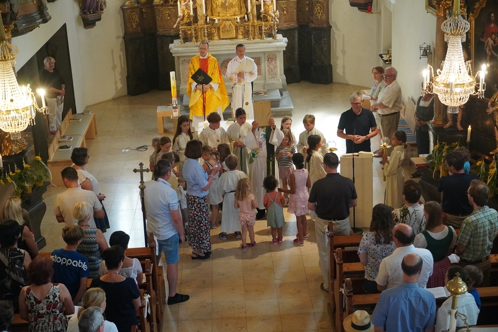 Einen bunten Familiengottesdienst, zu dem speziell die Taufkinder des letzten Jahres eingeladen waren, feierten Vikar Norbert Glaser und Diakon Michi Zepf mit Klein und Groß am 16. Juni in unserer Kirche.