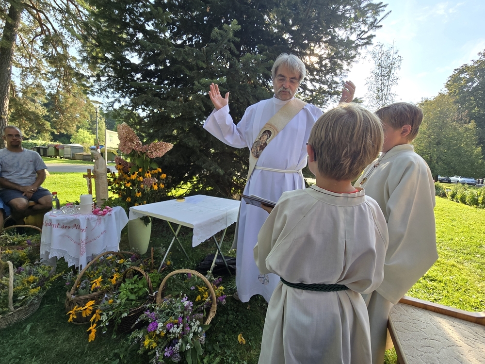 Zur Ehre der Gottesmutter und der Schöpfung segnete Diakon Michi Zepf am 15. August, dem "Großen Frauentag“, in einer Wort-Gottes-Feier in der Kaiserwald-Kapelle die mitgebrachten Kräuterbüschel.