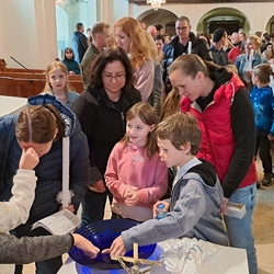 Im Anschluss des letzten Vorbereitungsworkshops in der Pfarre feierten die diesjährigen Erstkommunionkinder gemeinsam mit ihren Familien sowie Taufpatinnen und Taufpaten das Tauferneuerungsfest.