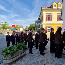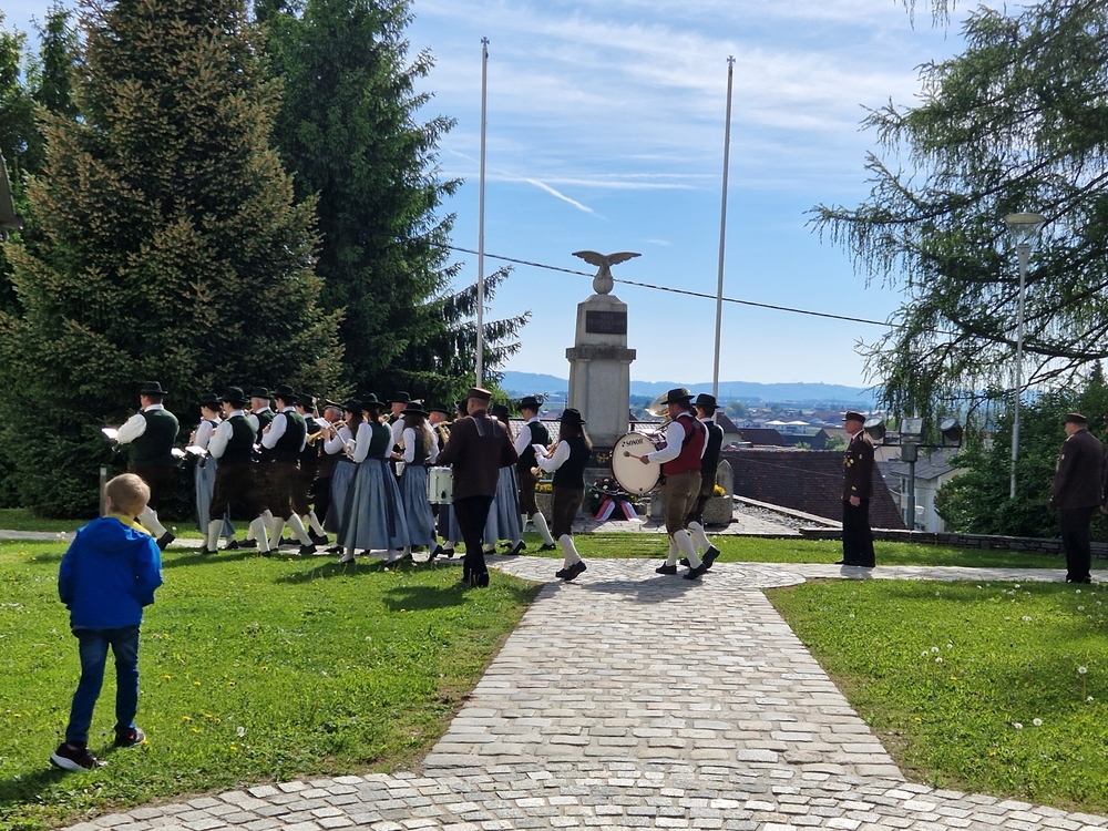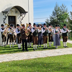 Musikalisch gestaltete – schon traditionell - die Marktmusik Unterpremstätten-Zettling die heilige Messe, den Ein- und Auszug sowie die anschließende Kranzniederlegung beim Kriegerdenkmal.
