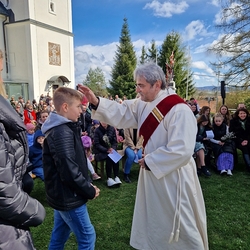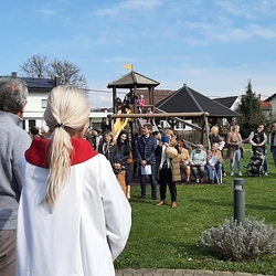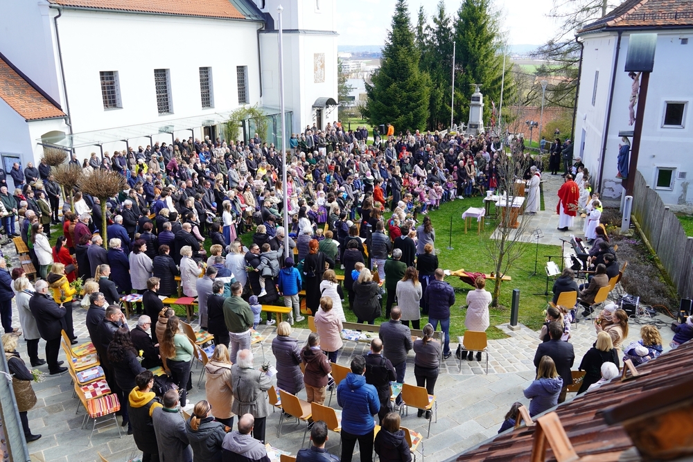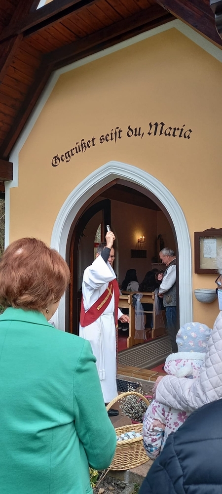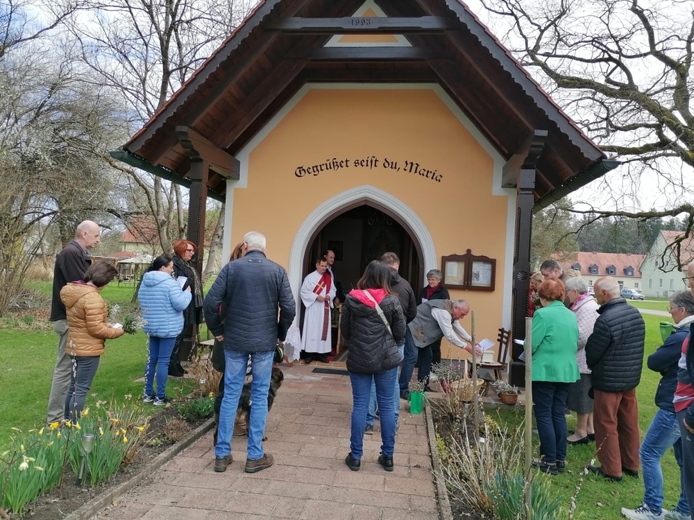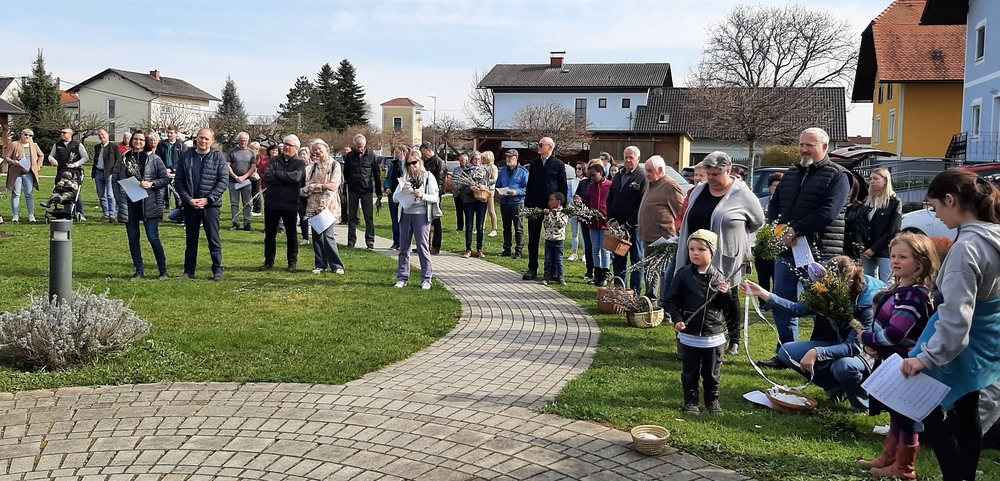 Diakon Franz Habith gestaltete um 11 Uhr in der Kaiserwald-Kapelle die Palmsegnung und Pastoralreferentin Ines Kvar leitete um 14:30 Uhr im Zettling-Park die Feier zur Segnung der Palmzweige.