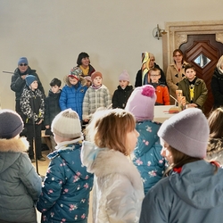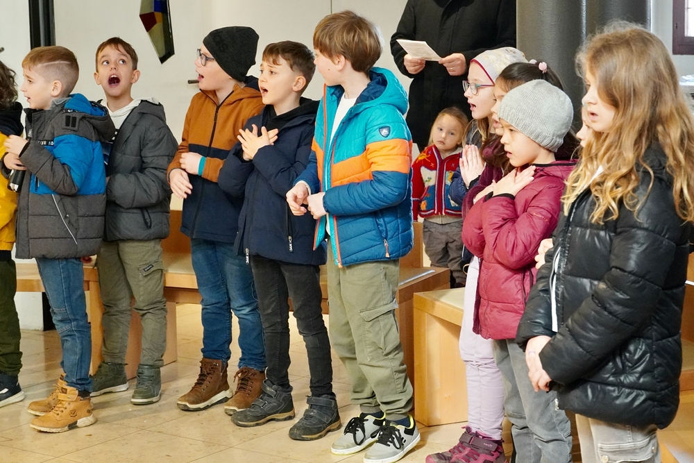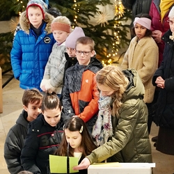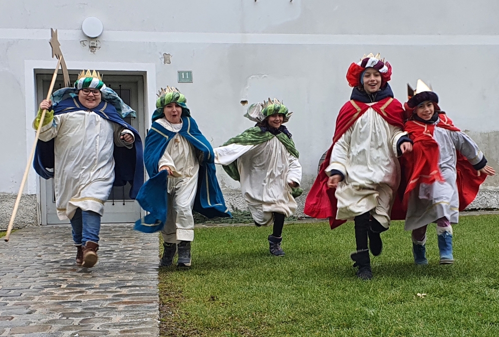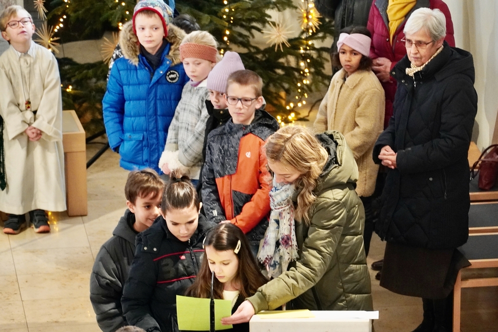Eine Sternsingergruppe überbrachte die Botschaft, die schon Tage zuvor in den Häusern verkündet worden war: Gott braucht uns, braucht dich und mich, um der Gerechtigkeit auf Erden eine Chance zu geben. Er braucht unsere Solidarität mit den Ärmsten!