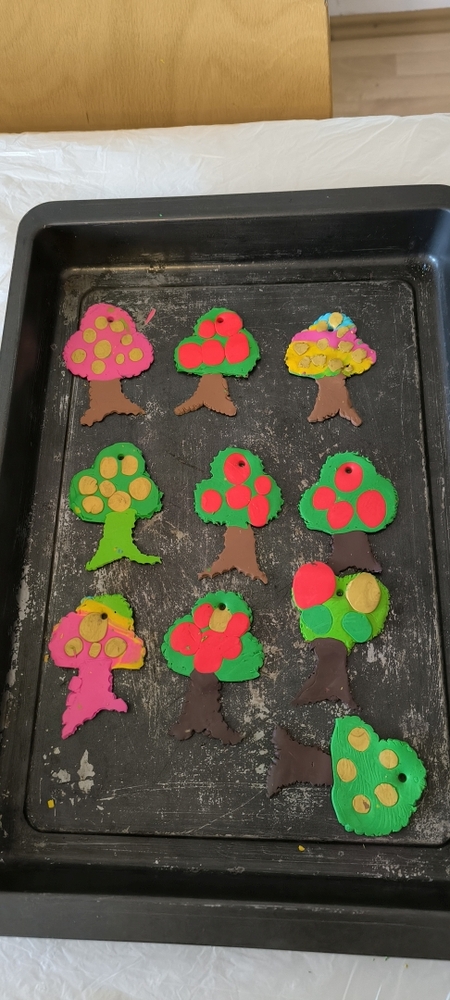 • das eigene Feierheft gestalten, eine Brosche aus Fimo und den Kirchenschmuck basteln