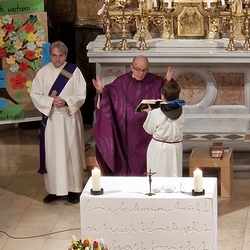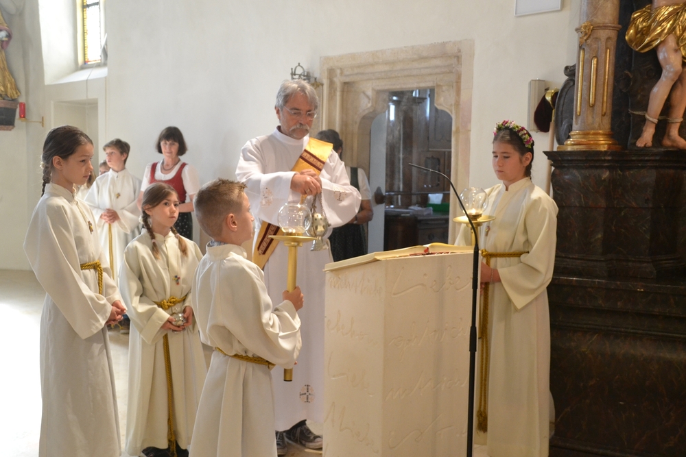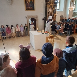 Um 10 Uhr schließlich feierten die Kinder in der Gemeinschaft der Pfarre mit Vikar Norbert Glaser und Diakon Michi Zepf die heilige Messe, gestalteten mit Texten die Feier mit und sangen begeistert ihre schönen Lieder. Ein Danke besonders an Frau Religionslehrerin Helga Krenn und das tolle Musikteam!