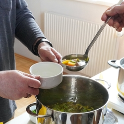 Der Pfarrgemeinderat und weitere Mitarbeiter*innen der Pfarre boten selbst gekochte Suppen an, die auch sehr gut und gerne angenommen wurden.