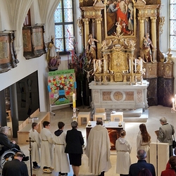Die Ängste und Sorgen vieler Menschen unserer Zeit wurden in die Feier aufgenommen und in den großen Fürbitten vor Gott gebracht. Er möge allen Bedrängten beistehen, Kriege, Not und Elend beenden!