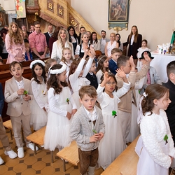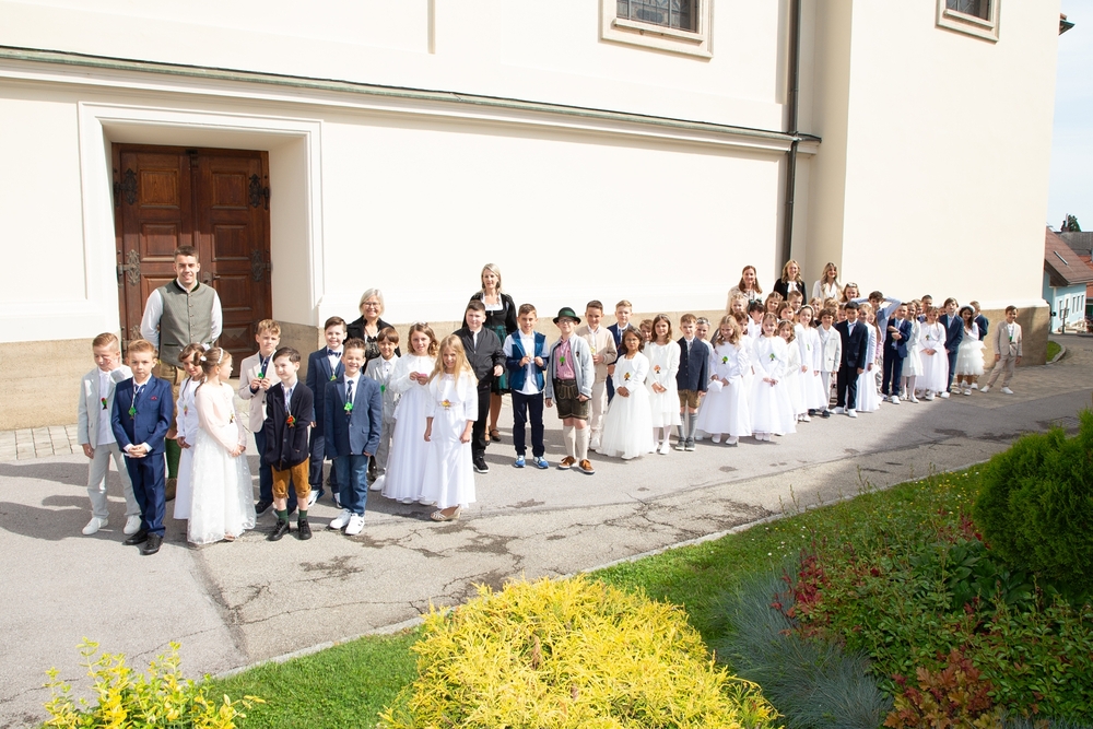 Die Kinder der vier 2. Klassen feierten am Samstag, 4. Mai ihre heilige Erstkommunion aufgrund der schlechten Wetterprognosen in der Pfarrkirche Wundschuh. Erstmals konnten wir mit 52 Kindern und ihren Familien nicht auf unserem Kirchplatz in Premstätten feiern. Bei 13 Grad Celsius zogen die Kinder in die Kirche ein. Doch uns wurde bald wärmer! Nicht nur durch das schöne miteinander Feiern, sondern auch weil so viele Gäste die Kirche bis auf den letzten Platz füllten.